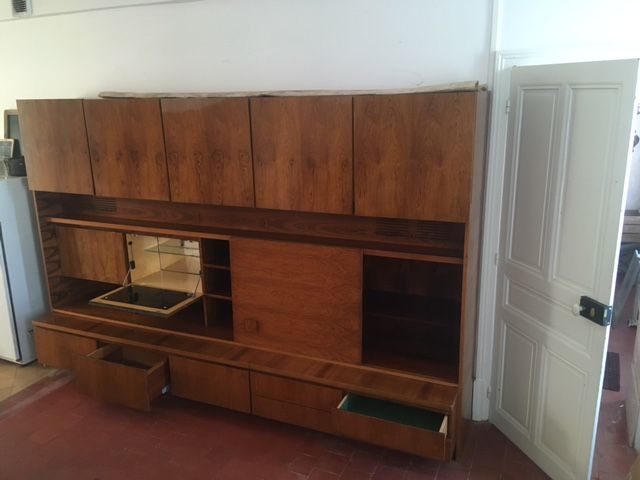 Offre de nombreux rangements ( 5 grands placards, 3 grands terroirs, 4 petits terroirs, des étagères) ainsi que deux placards "Bar" avec miroirs, typique des années 80!!