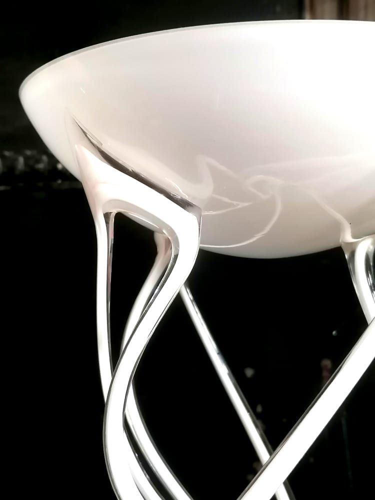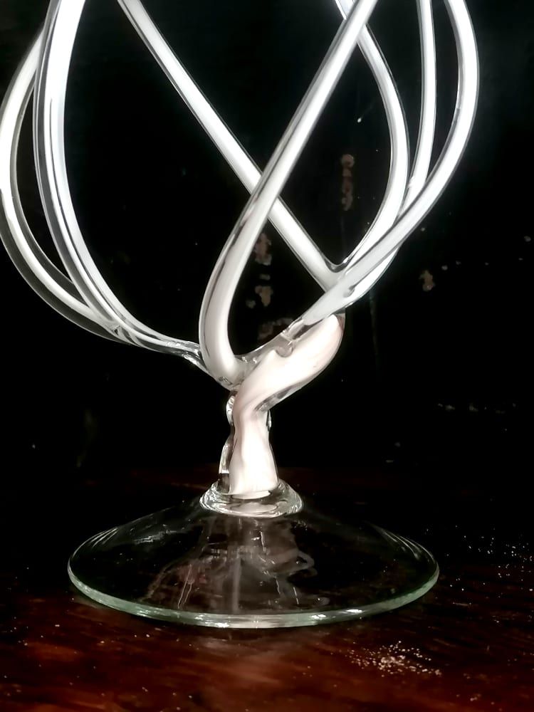 Pied travaillé en verre étiré faisant plusieurs fils en formes libres comme une pieuvre.