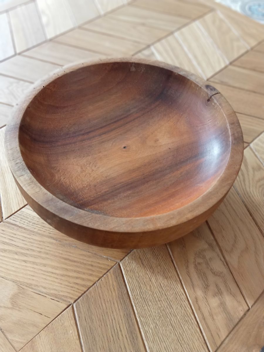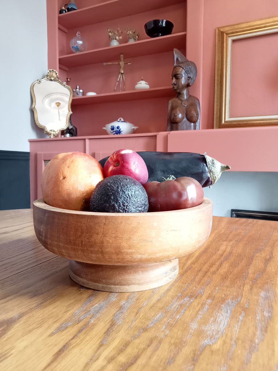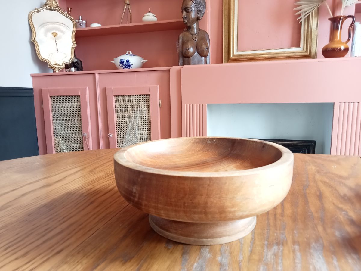coupe en bois lourd sur pied des années 70/80, avec une couleur sympa
