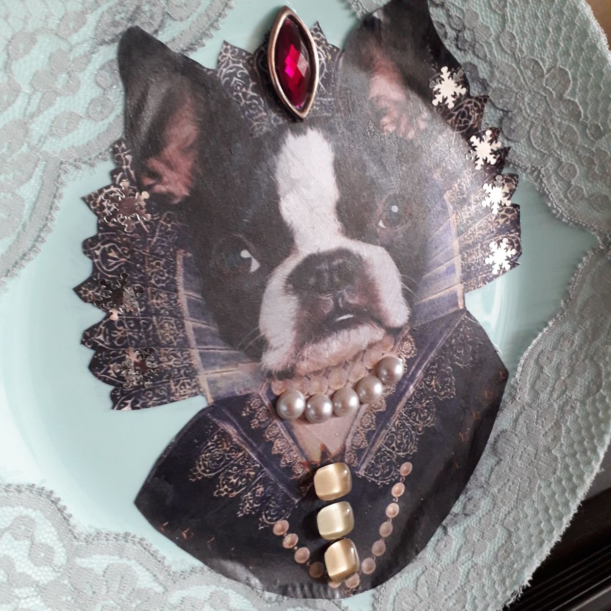 ASSIETTE DECORATIVE CHIEN HUMANISE