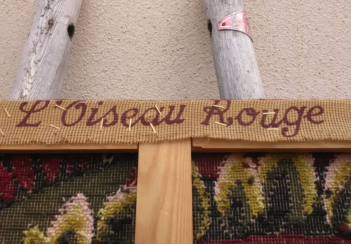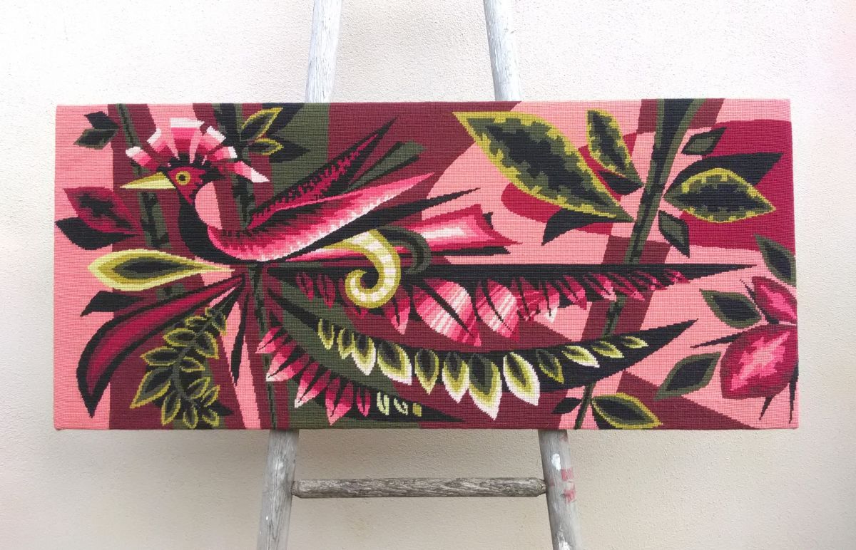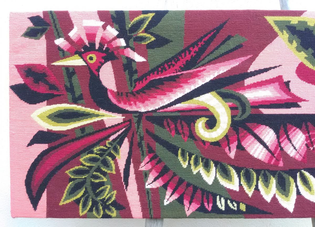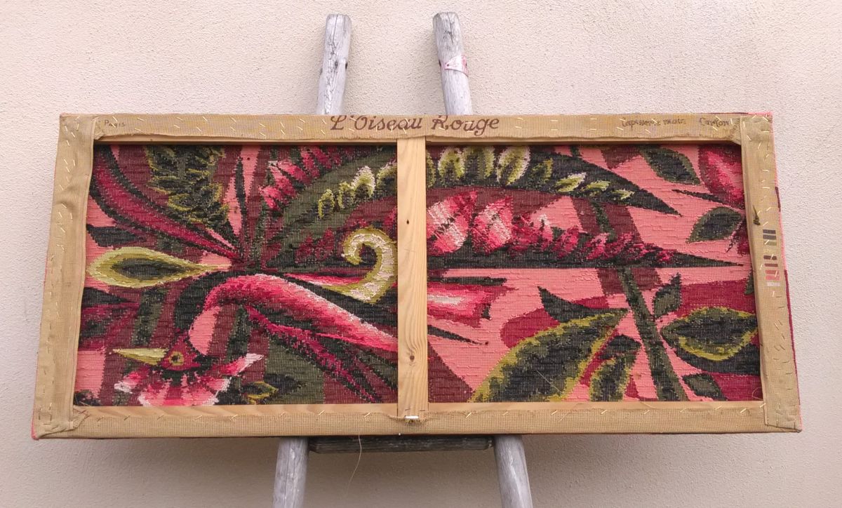 Grande tapisserie murale/Canevas "L'oiseau rouge" d'après Jean Lurçat sur châssis en bois