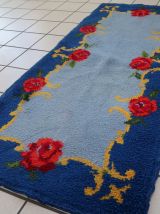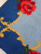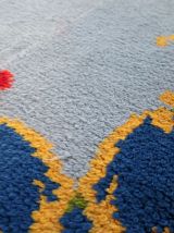 Vintage French Savonnerie rug in sky blue color. The rug has been made in wool in the end of 20th century. It is in original good condition.