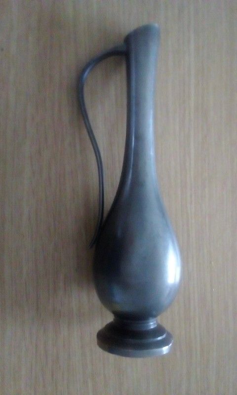 petit vase en étain vendu dans l état mesure 20 cm plus petite chop en étain vendu aussi dans l état mesure 7.5 cm