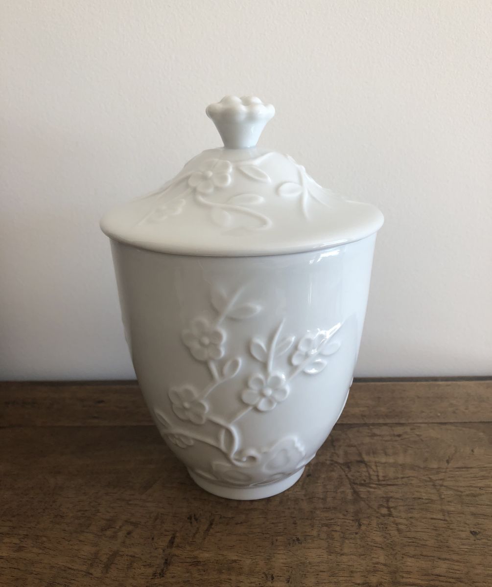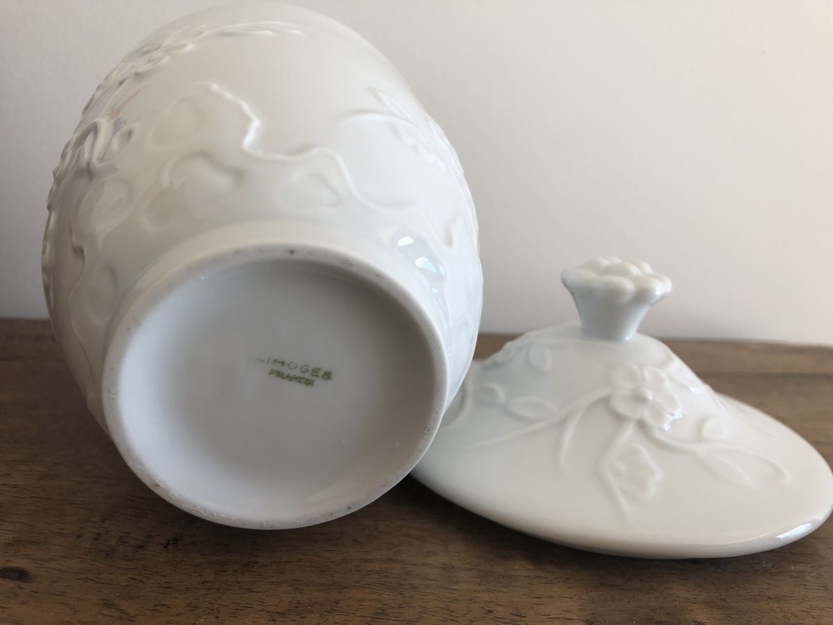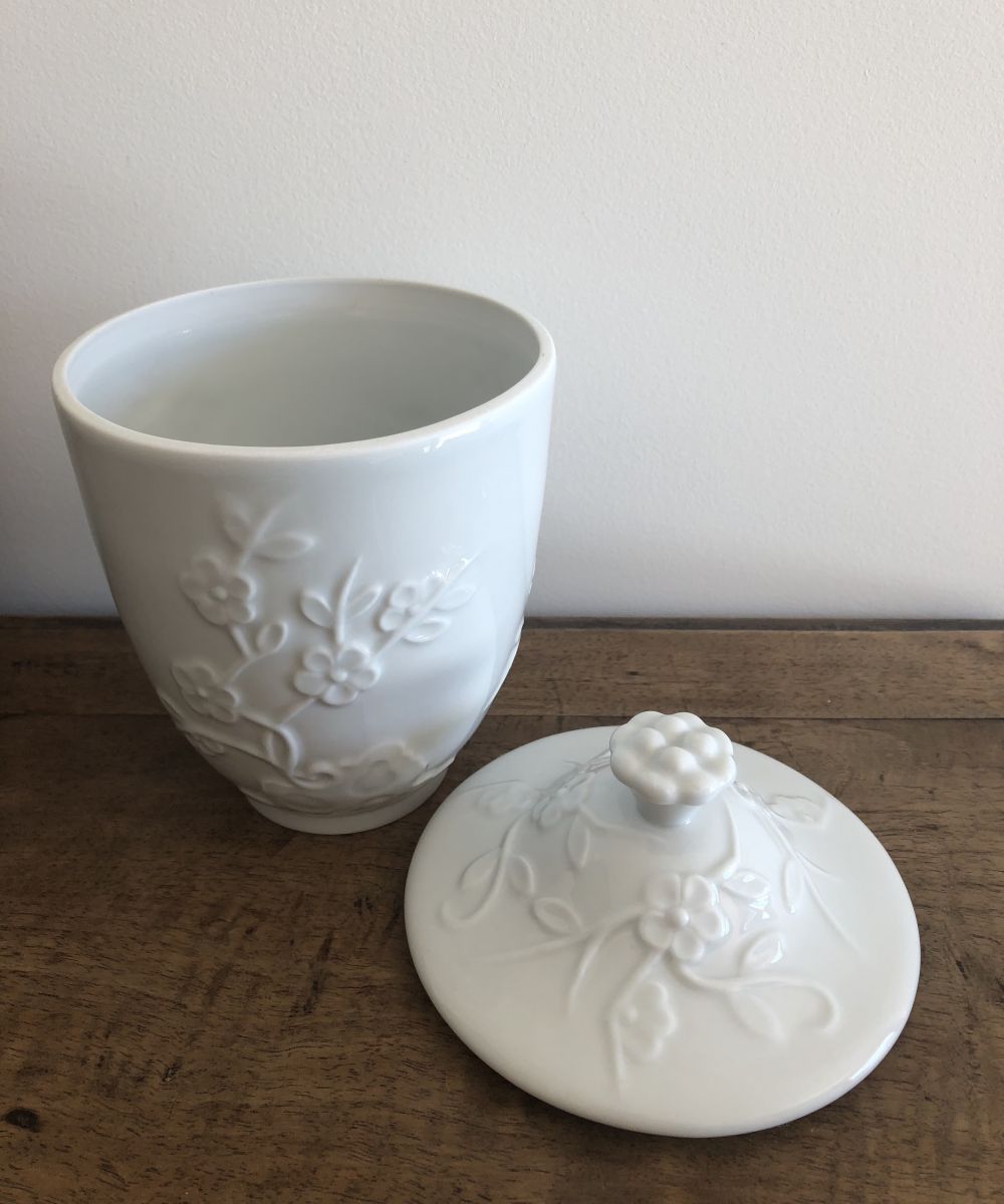 Pot en porcelaine de Limoges, motif japonais avec relief Dim: h 16 cm, d 11 cm