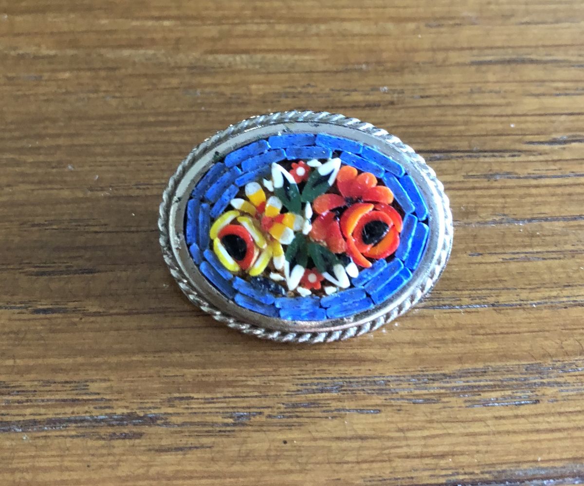 Broche italienne ancienne, 3 cm/2,2 cm Décor de fleurs Collection
