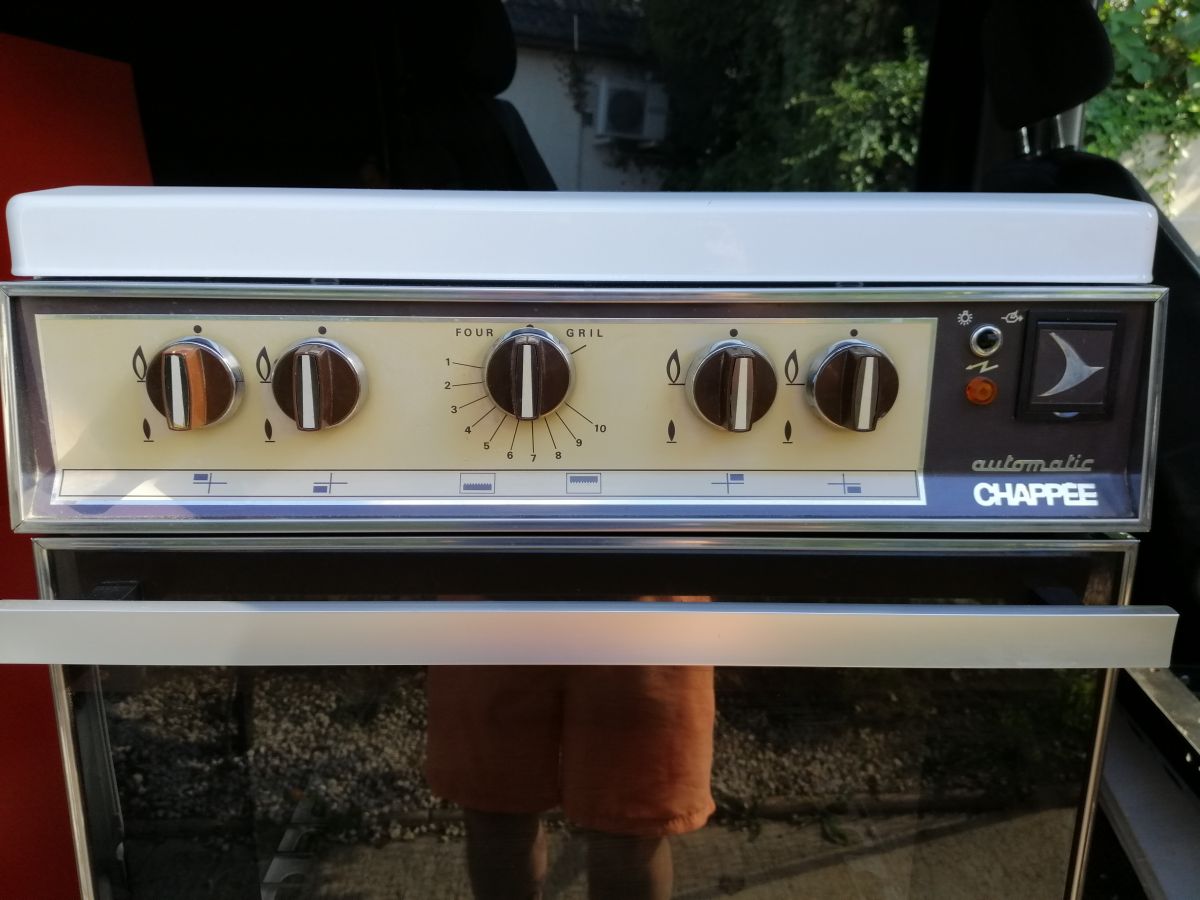 Gaziniere chappée vintage ( 40ans) tres peu utilisé et four neuf. Etat impeccable pour les amoureux du vintage. A venir récupérer sur place.