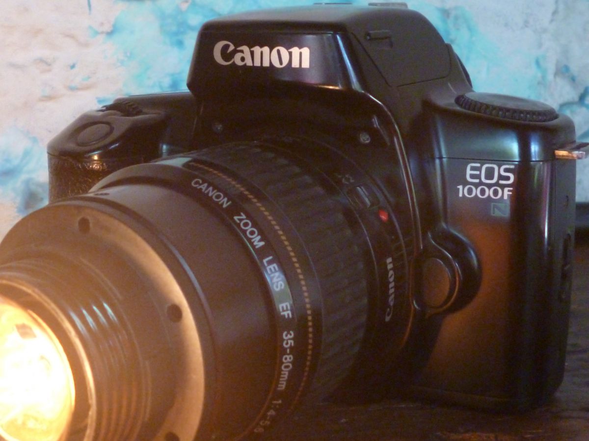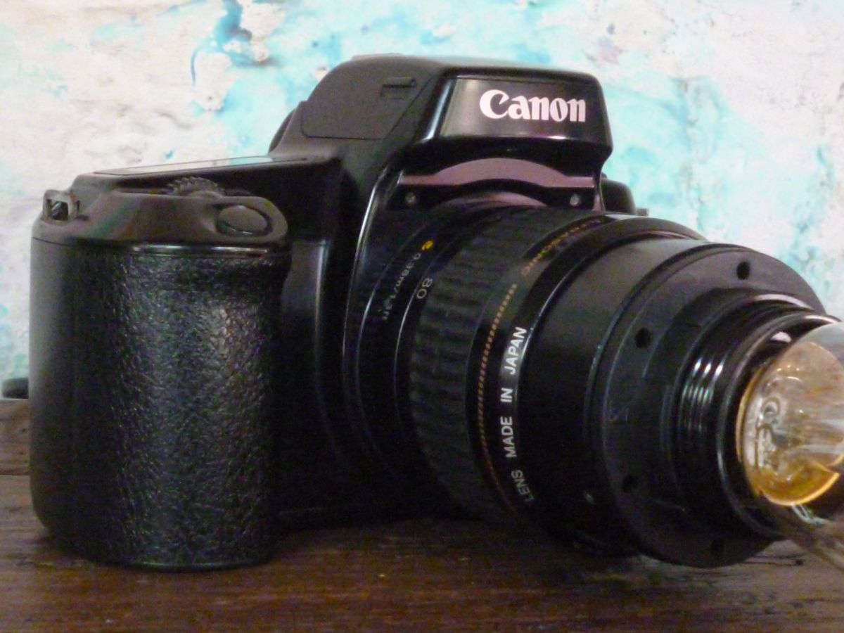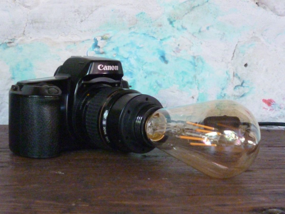 Lampe d'ambiance realisee a partir d'un appareil photo " CANON EOS 1000 " des annees 90 .
