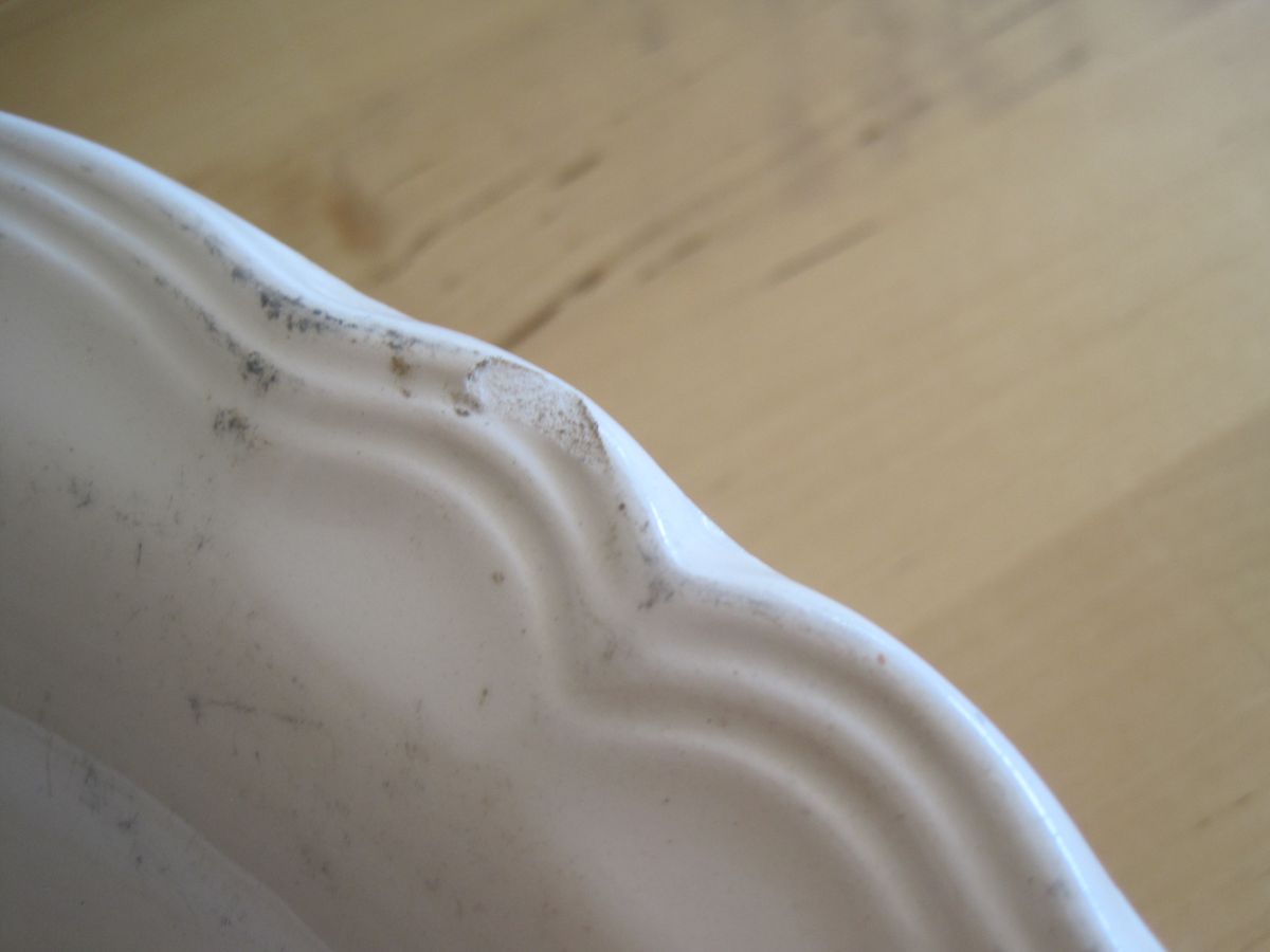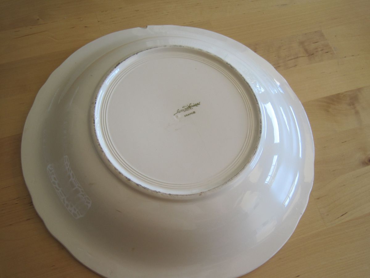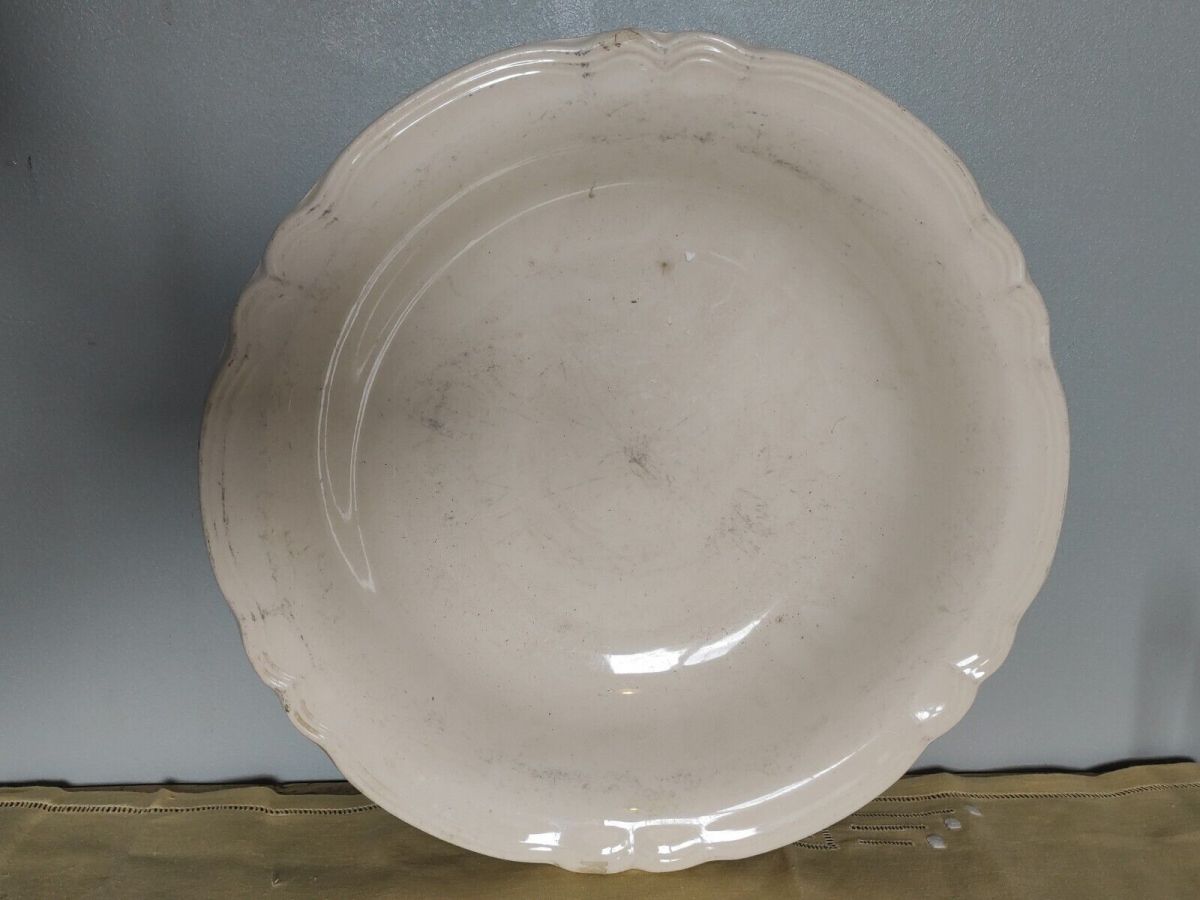 Plat creux à bords chantournés couleur ivoire, en faïence de Sarreguemines. french dish. diamètre 31.50 cm