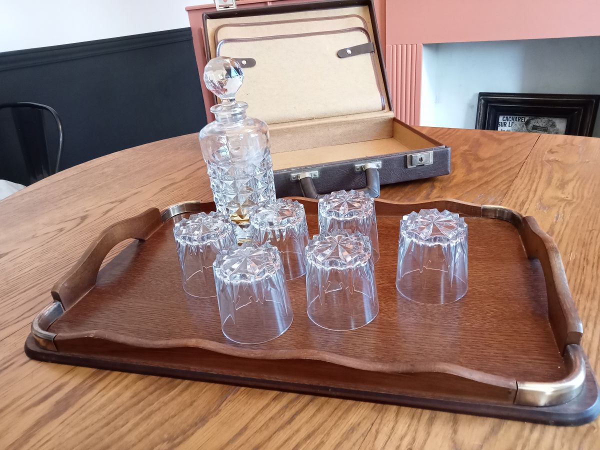 Parfait pour accueillir un service carafe et verres comme sur la photo.