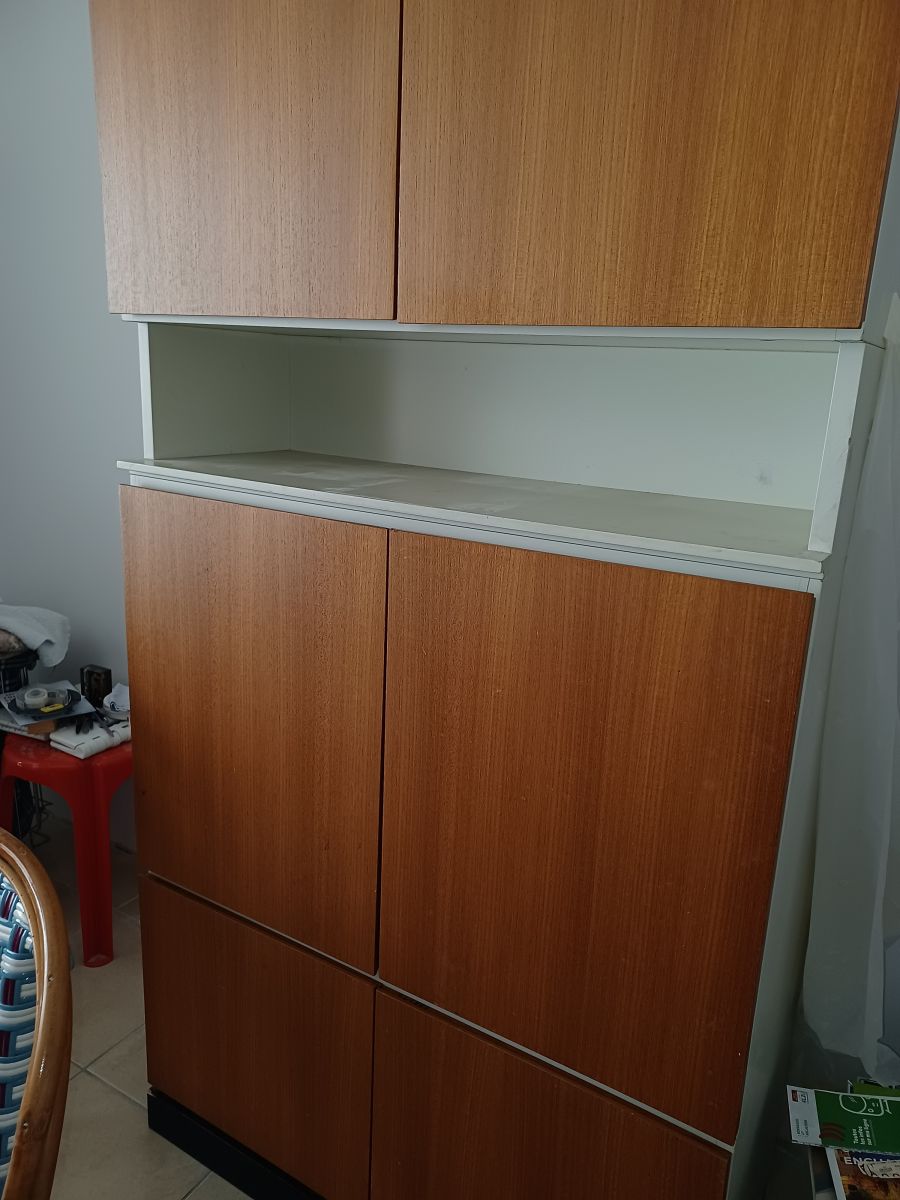 Meubles modulaires des années 60 papier au dos de chaque module.