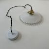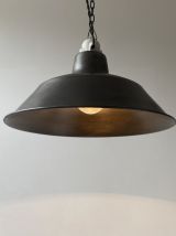 Elles ont été poncées et patinées ton anthracite. L’électricité a été refaite avec douille à baïonnette en céramique (Ampoules B22). Branchement par domino. Fil noir en tissu tressé et rosace de fixation en porcelaine.