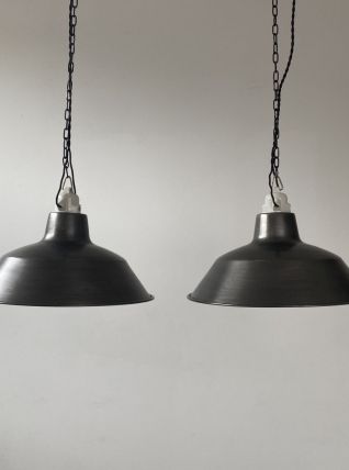 Lot 2 anciennes suspensions industrielles en acier. Années 1960.