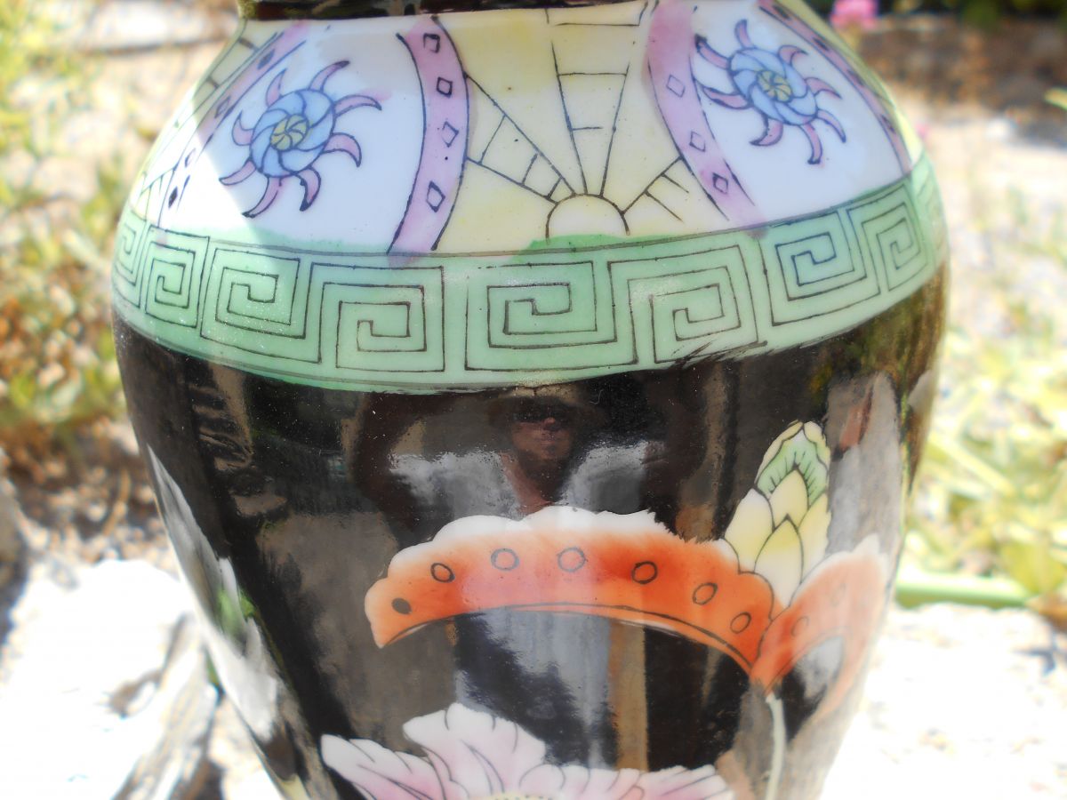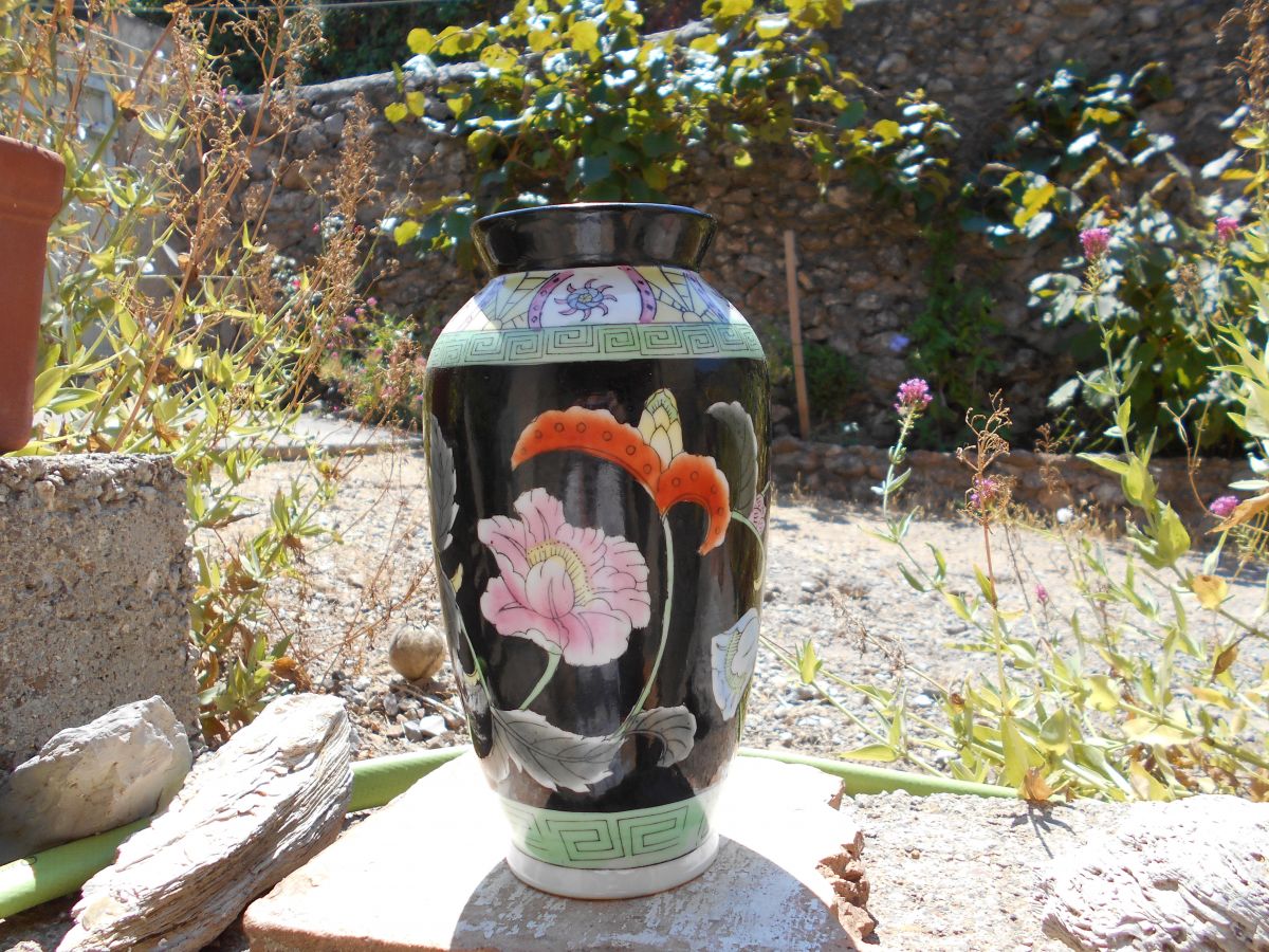 VASE ART NOUVEAU ART DECO NOIR FLEURS TBE