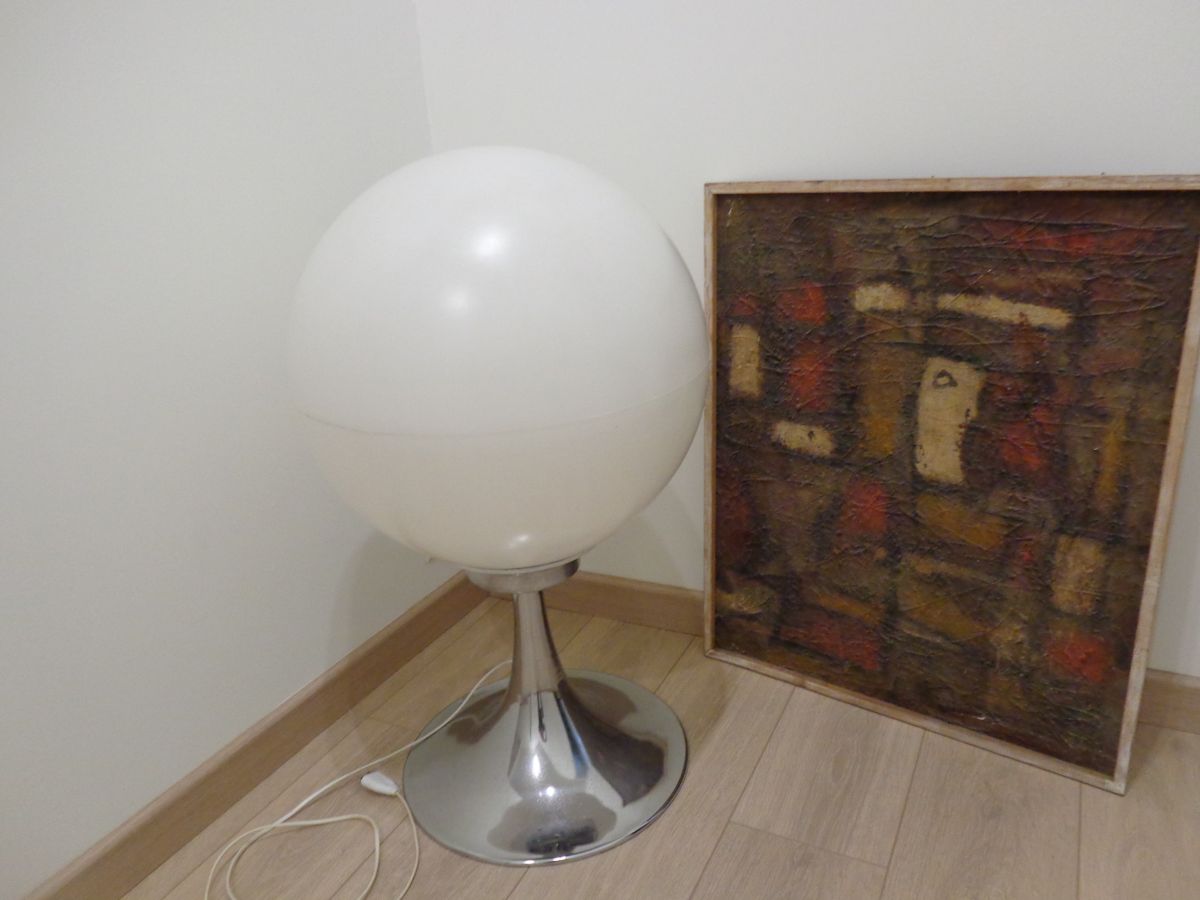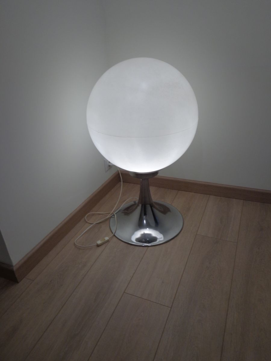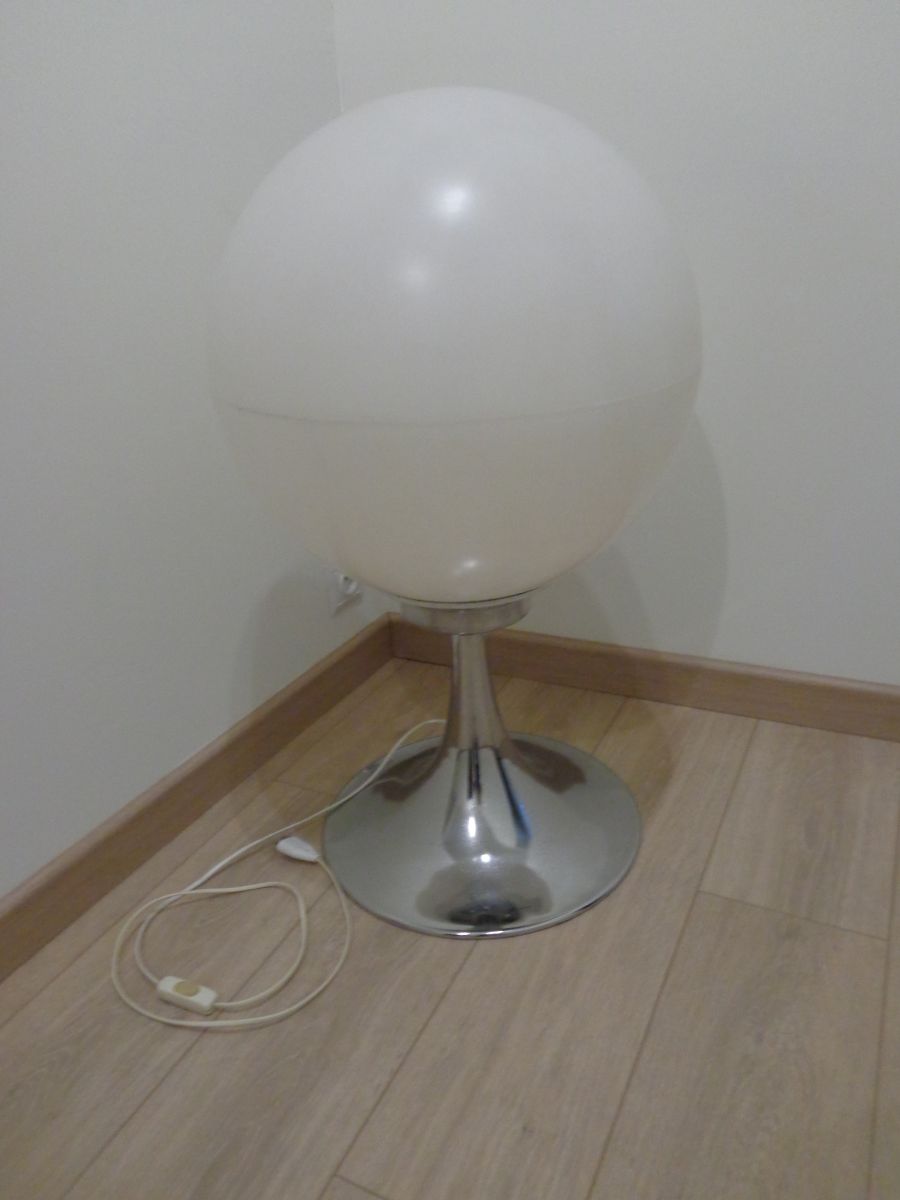Grande lampe vintage des années 60 pied tulipe chromé globe blanc à poser par terre ou sur un meuble entièrement d origine qui sera très remarquée dans votre intérieur vintage et qui intègre une superbe déco belle et lumineuse