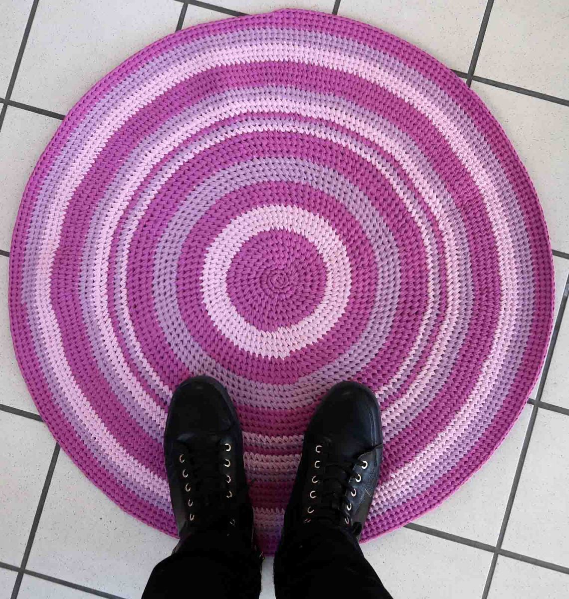 Handmade contemporary French braided round rug made by One Royal Art, collection 2021. This rug is one of a kind made in France.