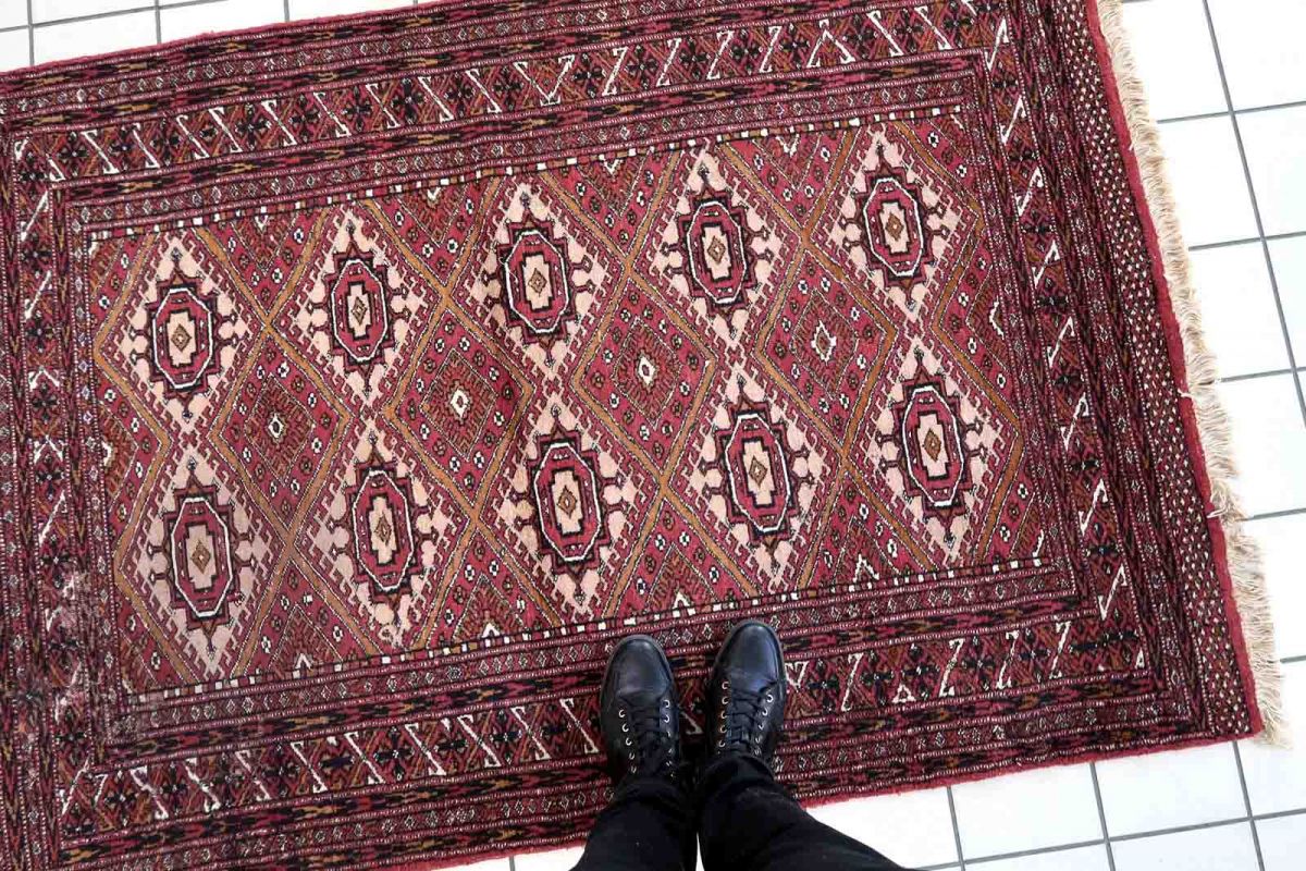 Handmade vintage Afghan Ersari rug in original good condition. The rug has been made in wool in the end of 20th century.