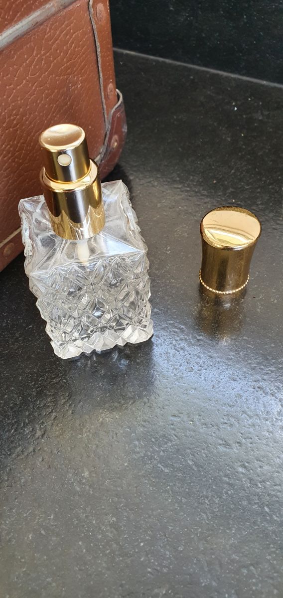 Petit vaporisateur vintage, carré, en verre motifs en relief.