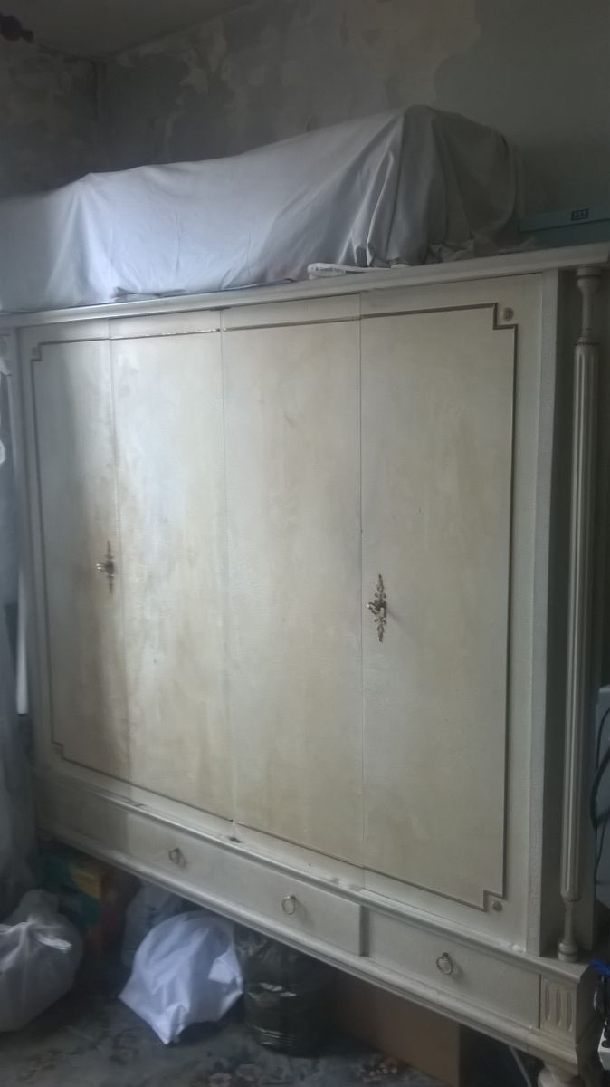 Chambre à coucher style Marie-Antoinette blanc craquelé en doré.