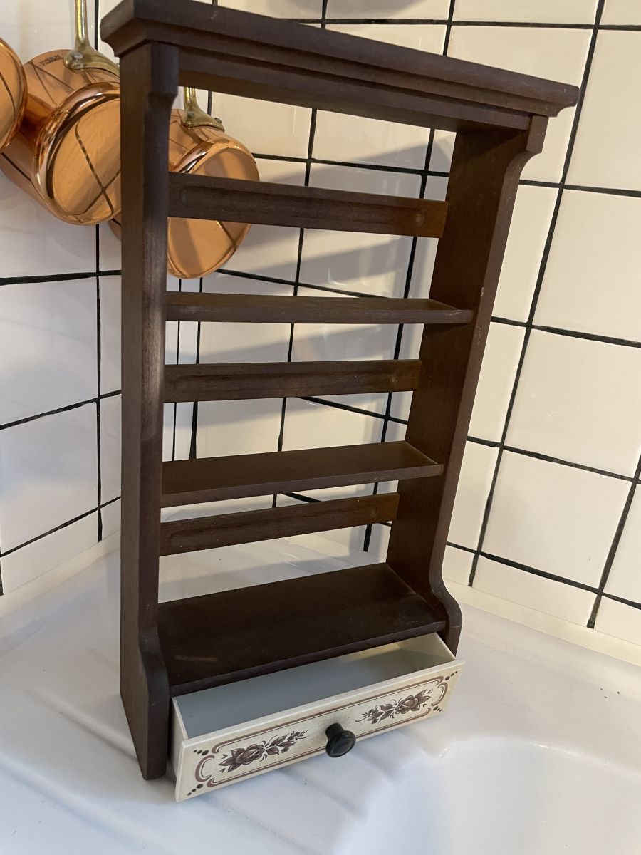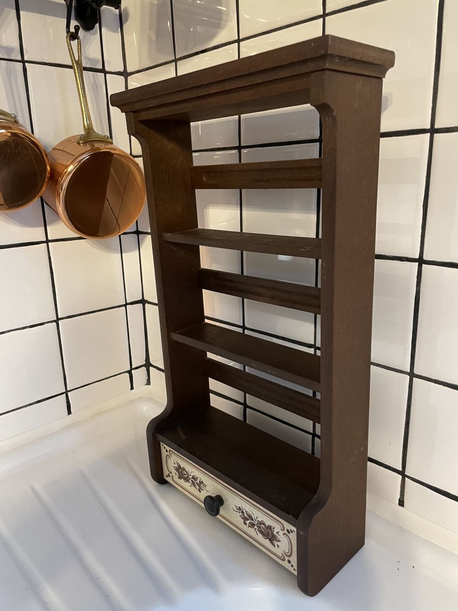 Jolie étagère en bois vintage , possède un tiroir en mélamine.