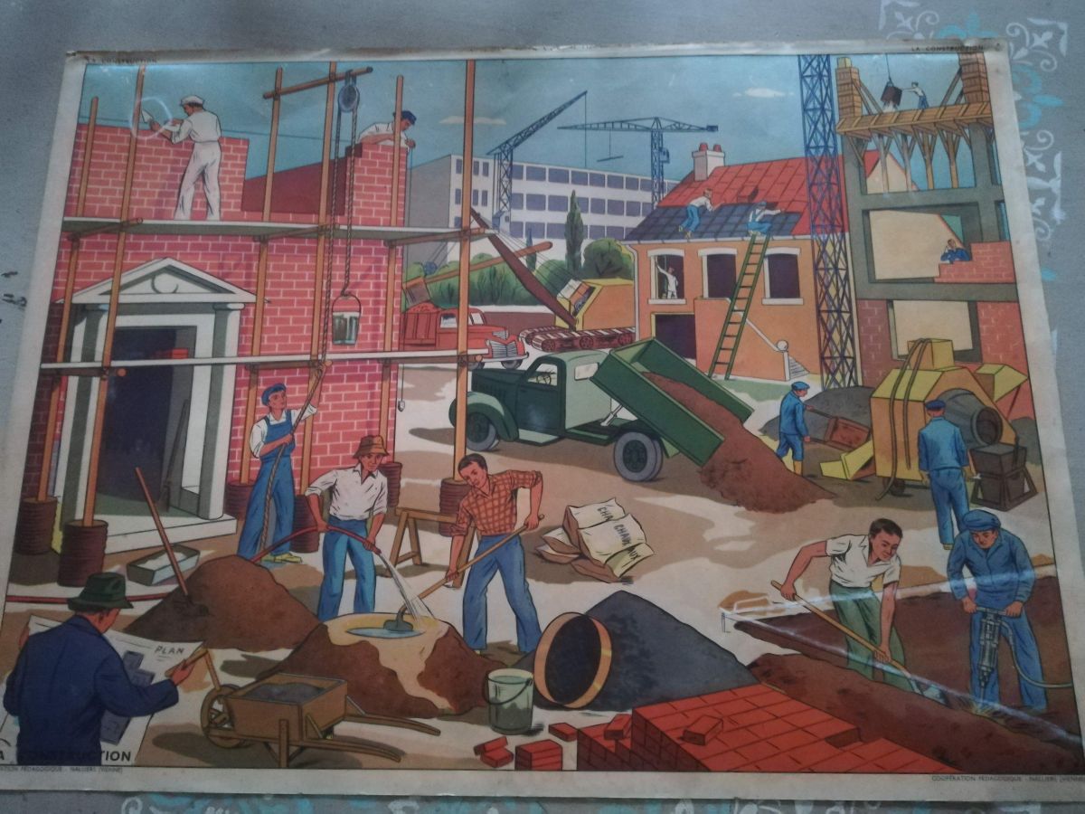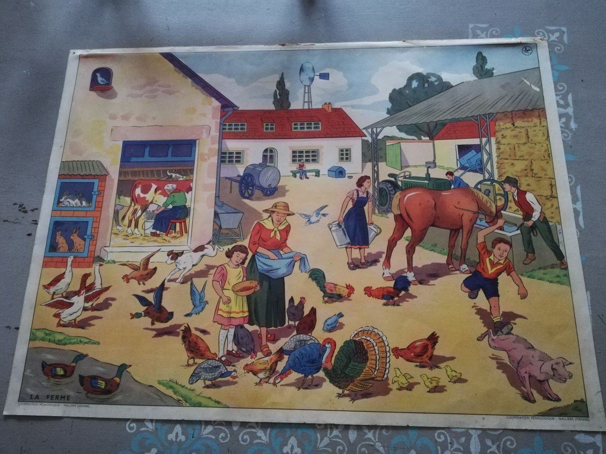 Affiche scolaire vintage La ferme - La construction