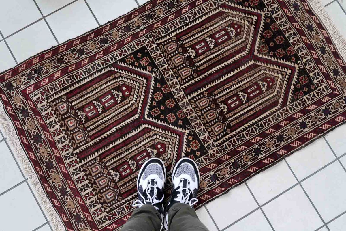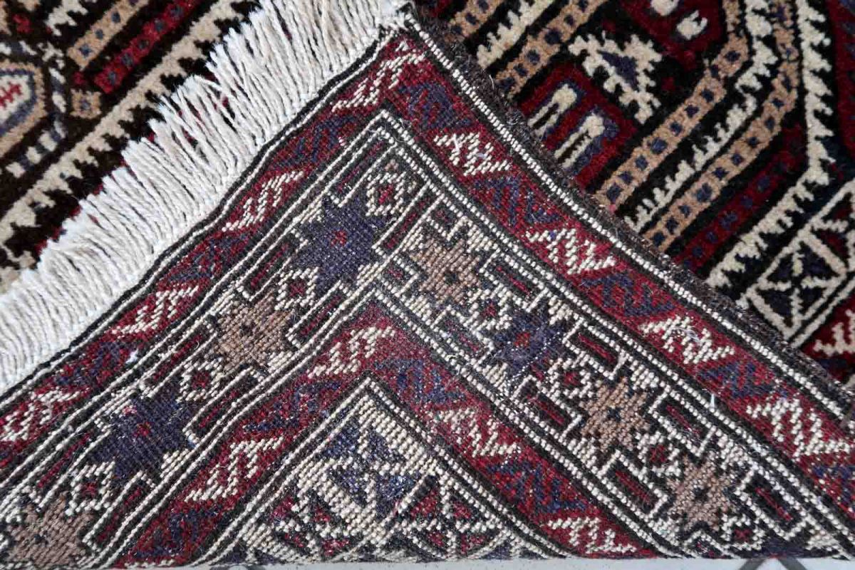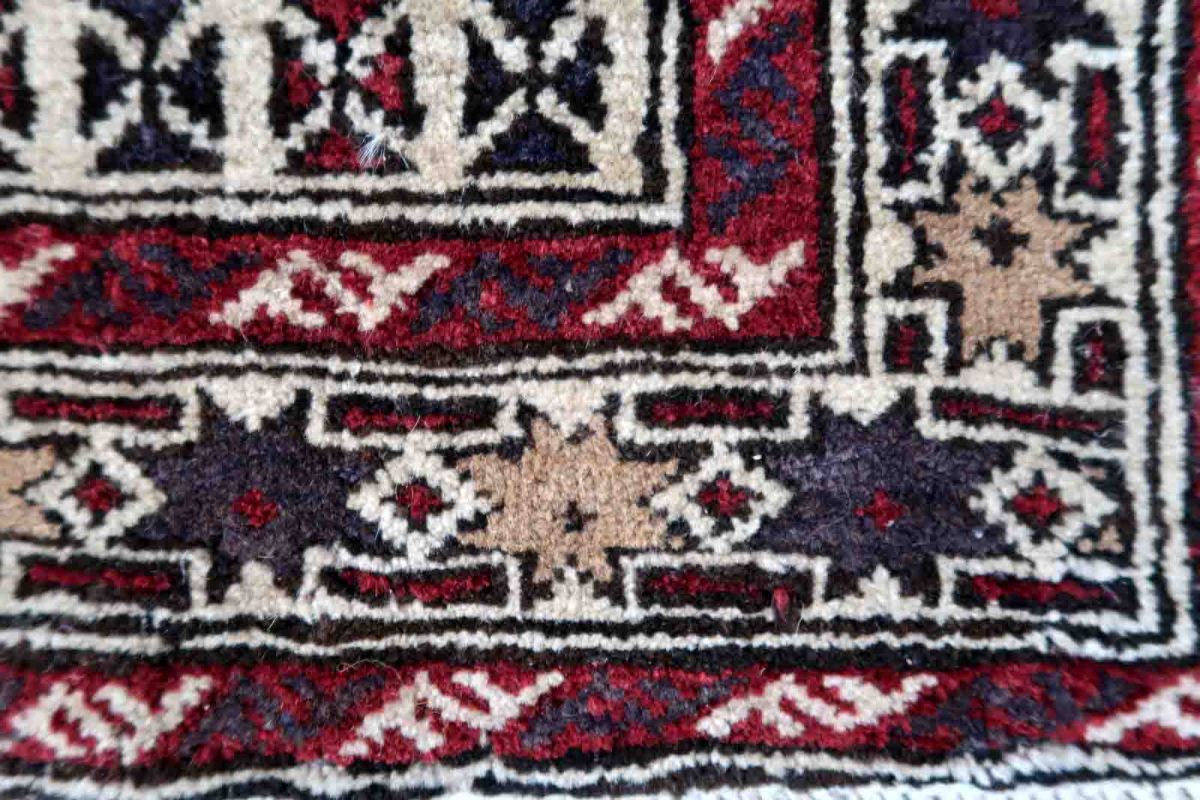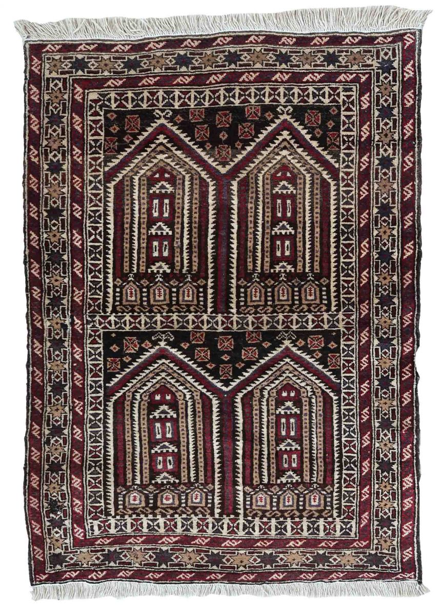 Handmade vintage Afghan Baluch rug in unusual multi-praying design. The rug is from the end of 20th century made in wool.
