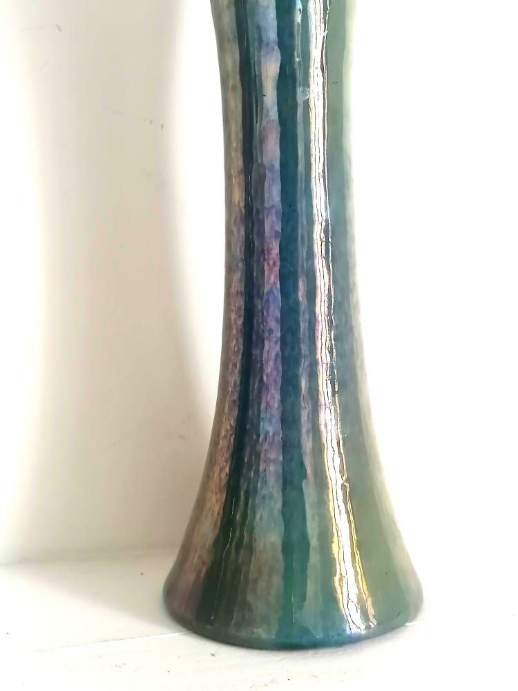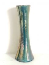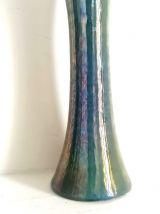 Alphonse Cytère (1861-1941), vase soliflore à col évasé en grès flammé de Rambervillers. Belle pièce de collection avec son iconique grès flammé en camaïeu intense de bleus et de verts métallisé et irisé. Travail des années 1920/1930.