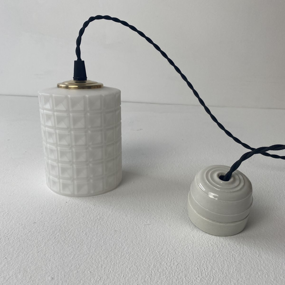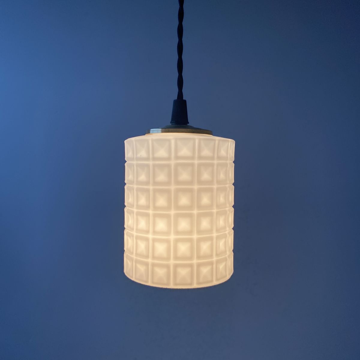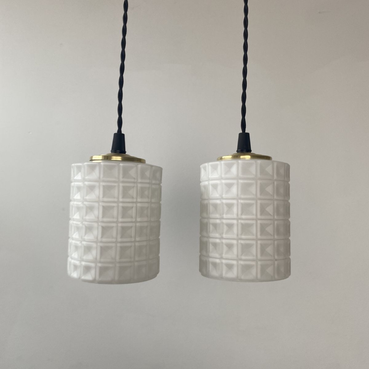 PAIRE D'ANCIENNES PETITES SUSPENSIONS EN OPALINE VINTAGE
