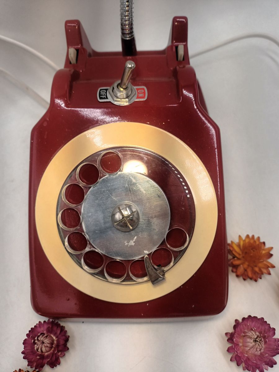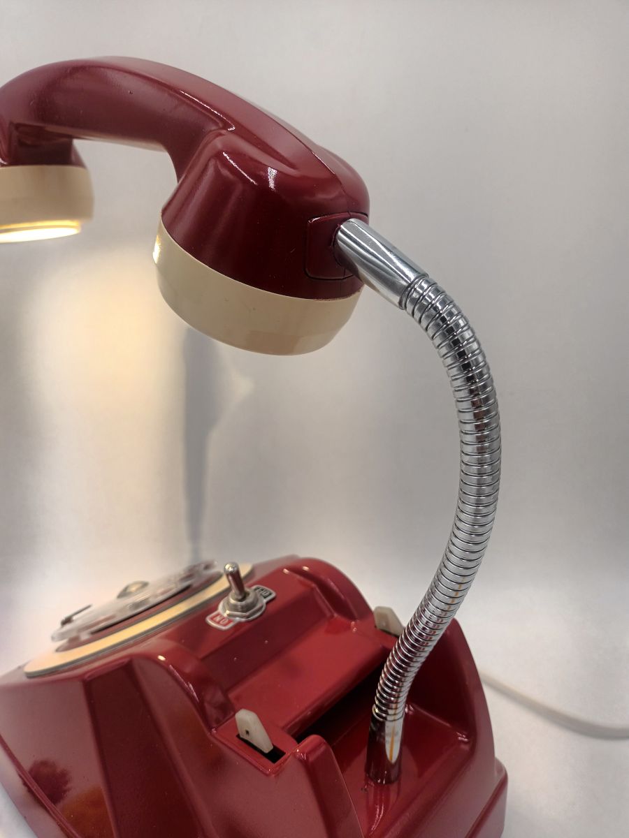 Téléphone repeint et reverni, transformé en lampe à poser, ou lampe de bureau.
