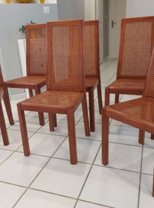 Suite de 6 chaises cannage design italien vintage années 70