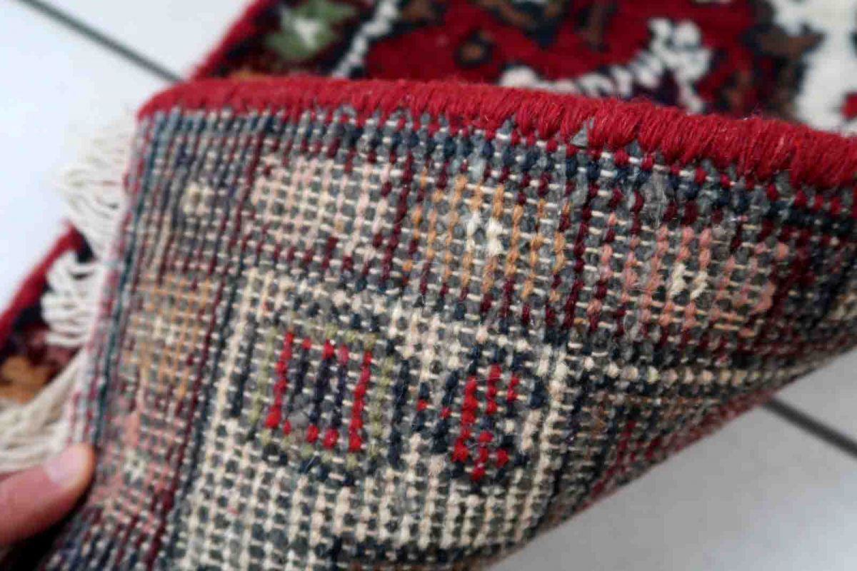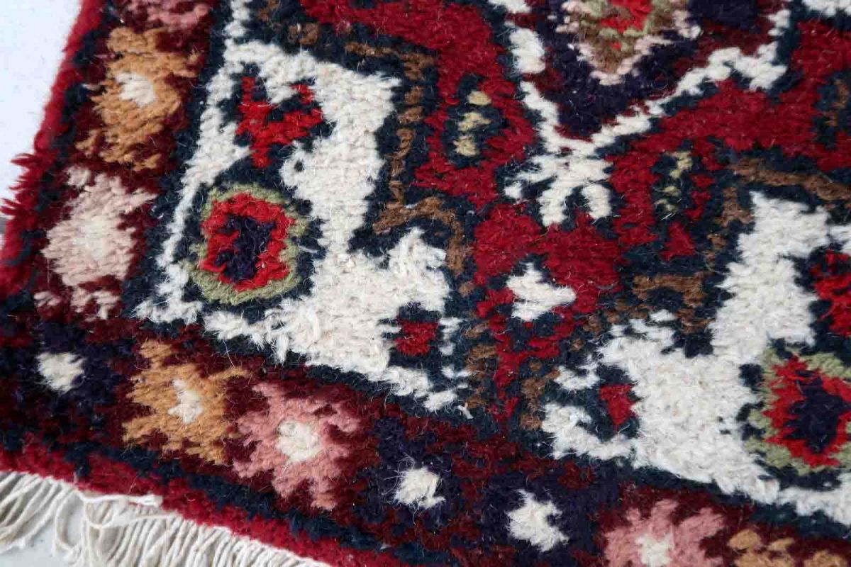 Handmade vintage Middle Eastern rug in traditional medallion design. The rug has been made in wool in the end of 20th century. It is in original good condition