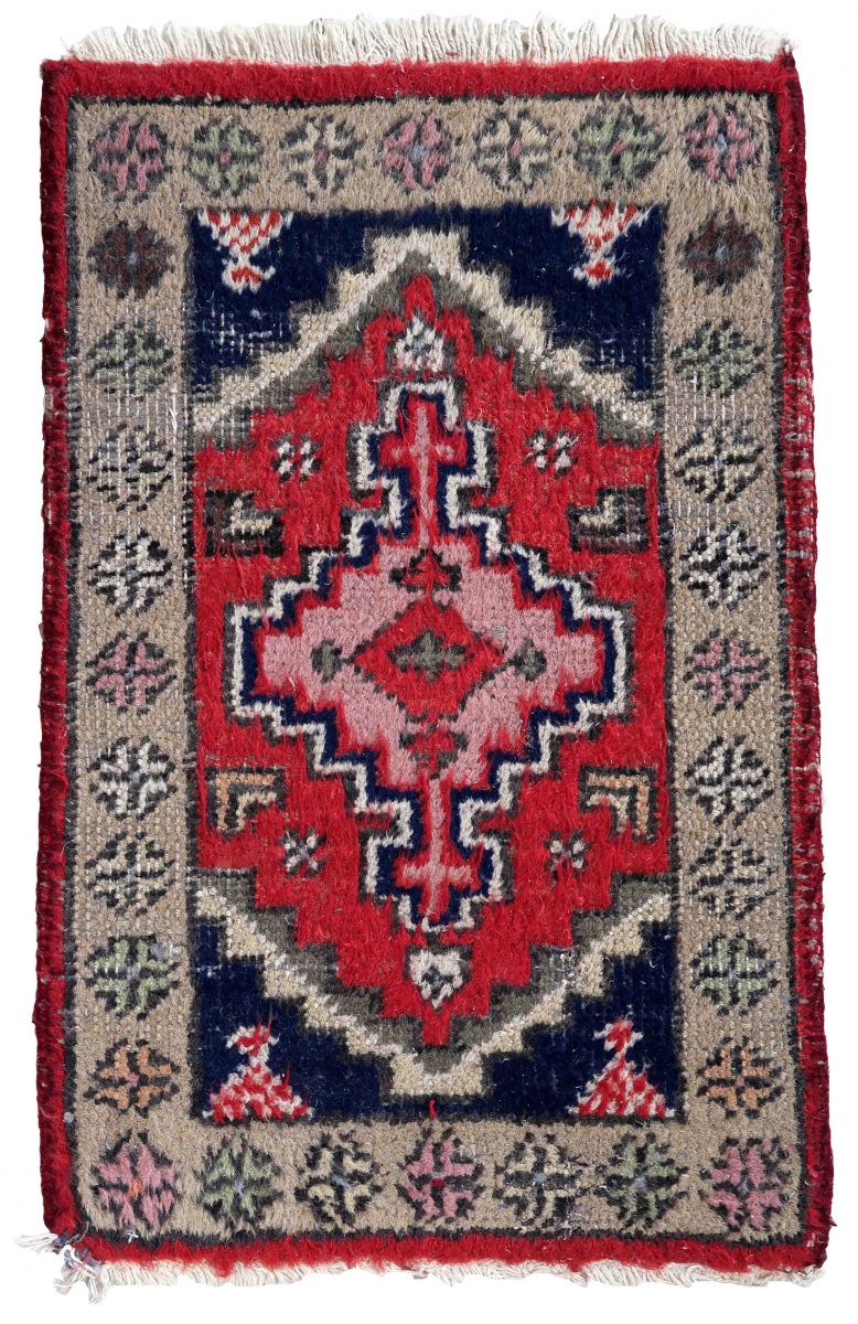 Handmade vintage Middle Eastern rug in traditional medallion design. The rug has been made in wool in the end of 20th century. It is in original condition, has some low pile.