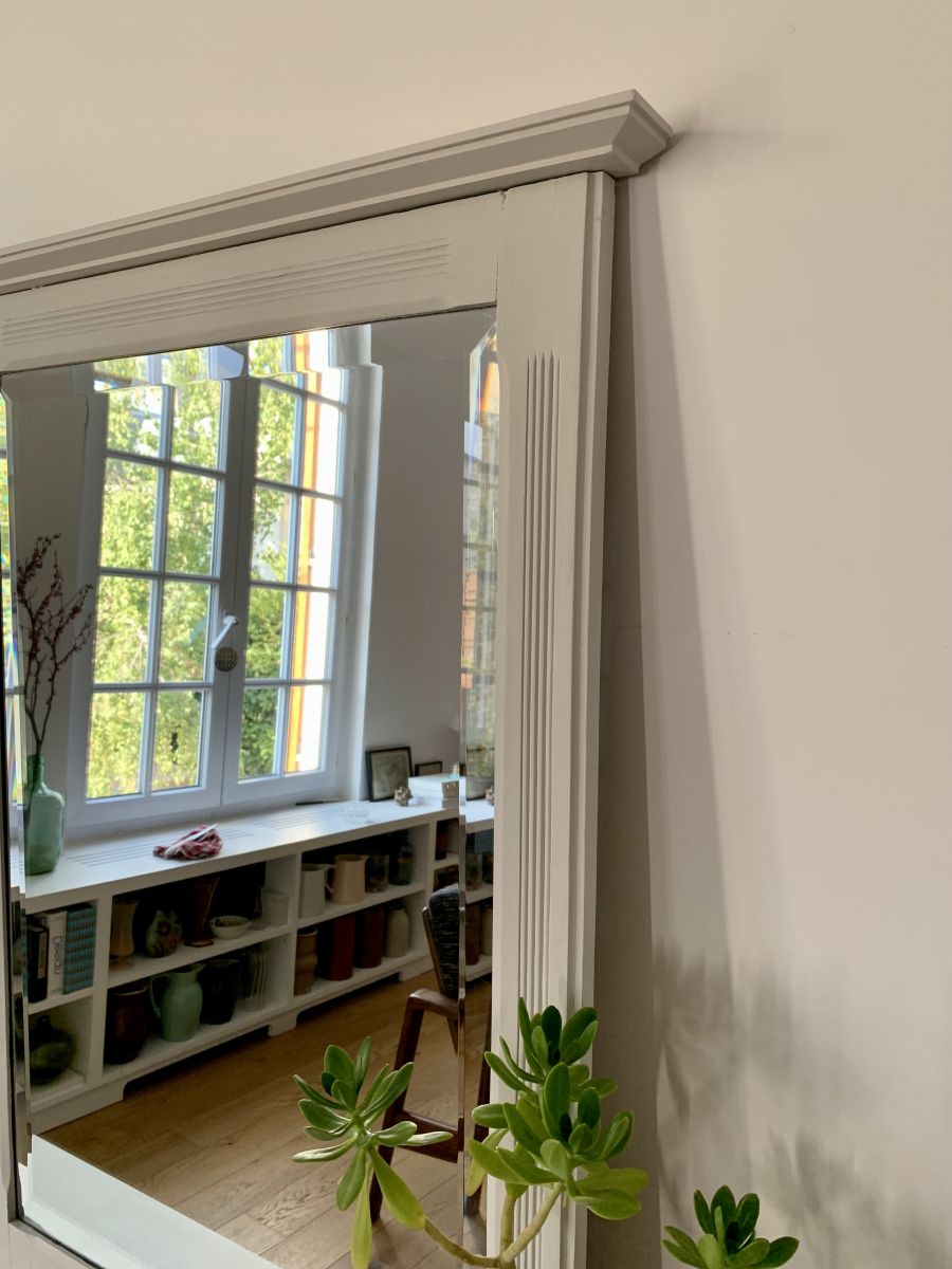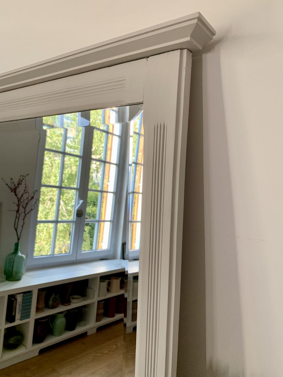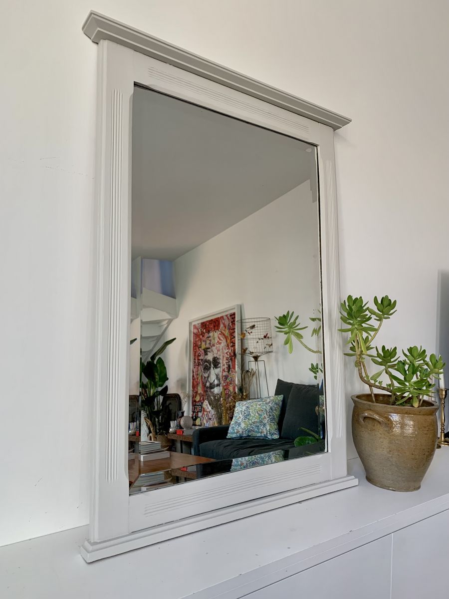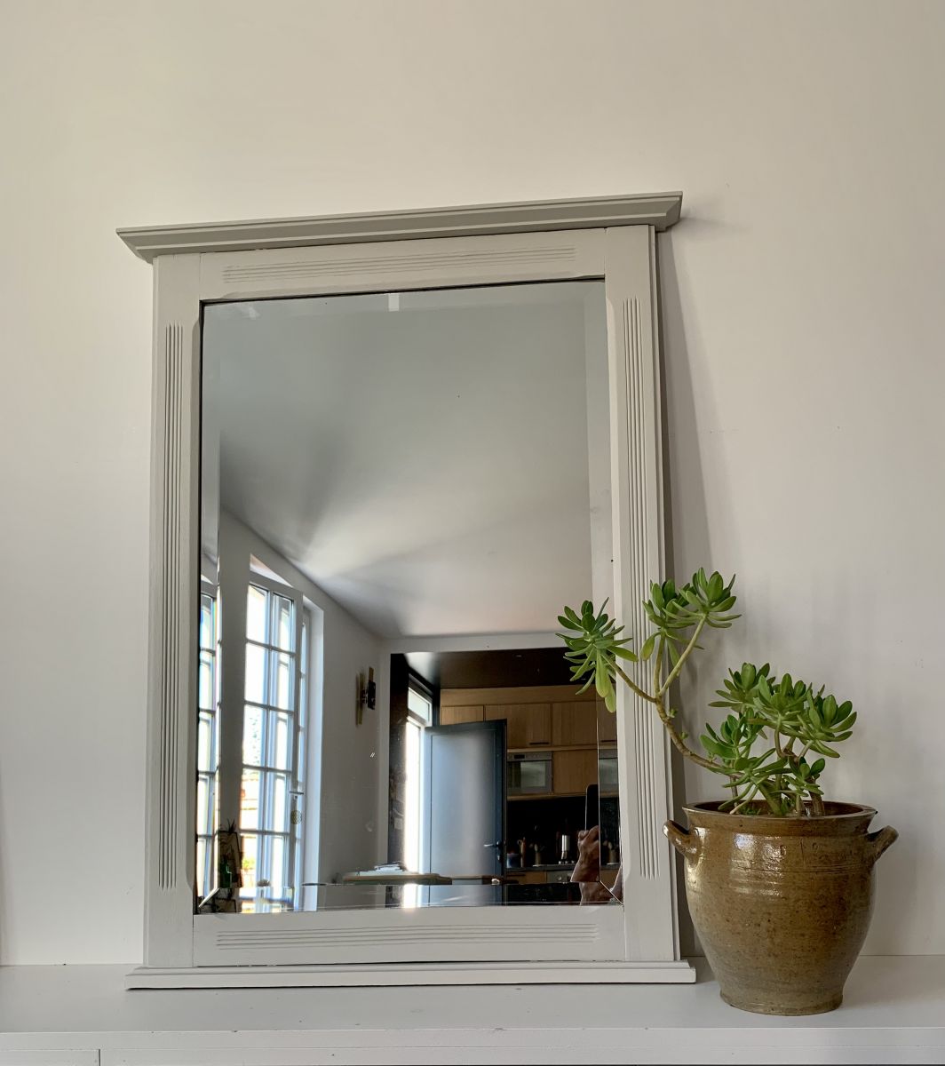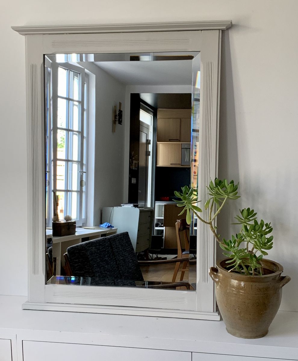 Simplicité et élégance, beau miroir biseauté de cheminée.