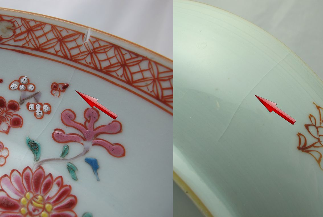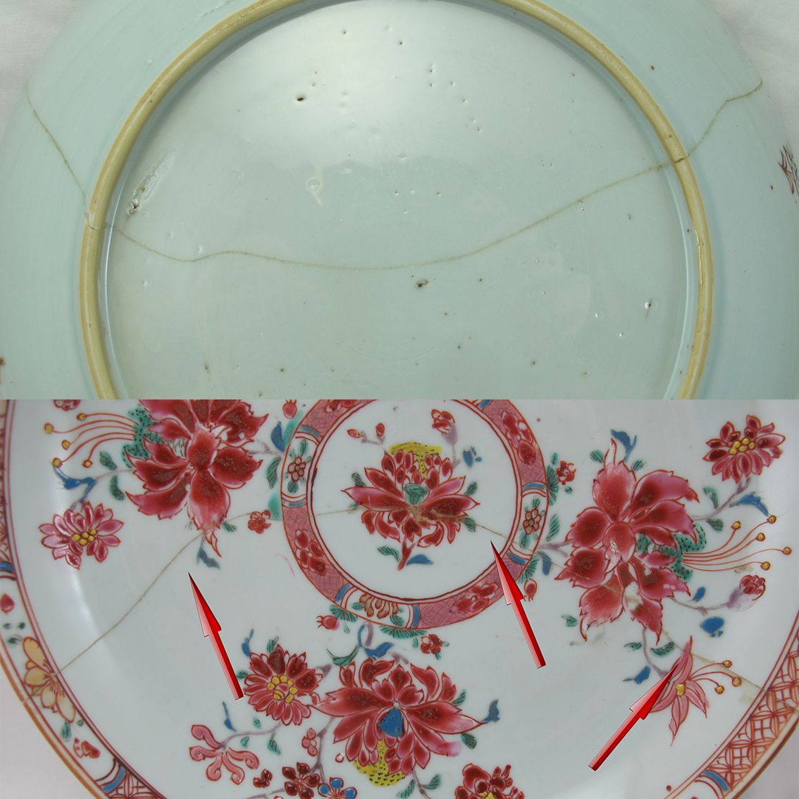 3 assiettes en porcelaine famille rose Chinoise, Chine 18è s