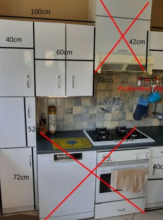 Les plans de travail sont en mélaminé. Possibilité de les récupérer avec la cuisine.