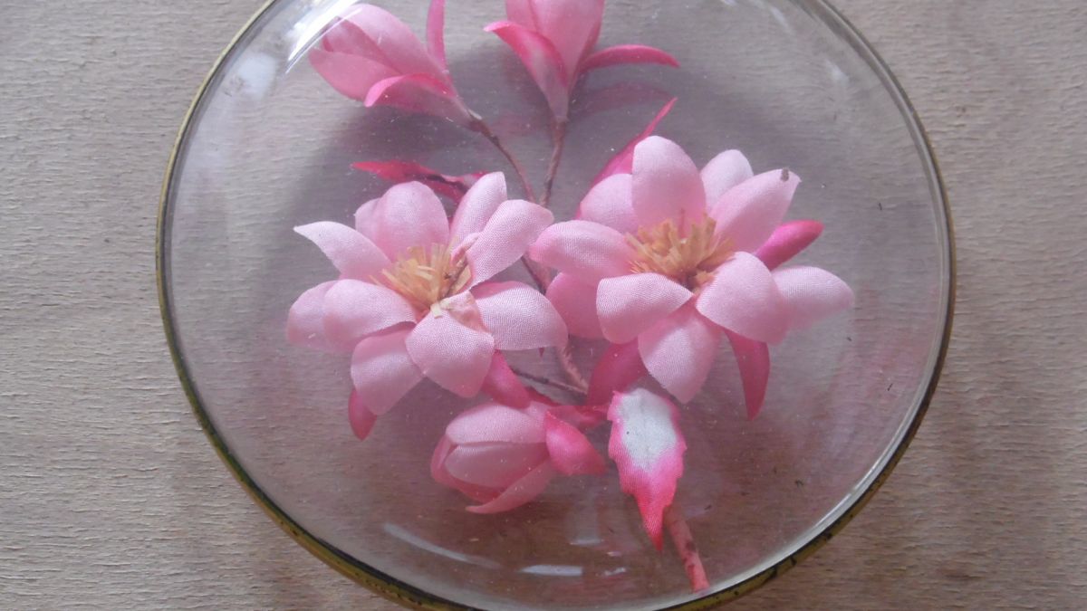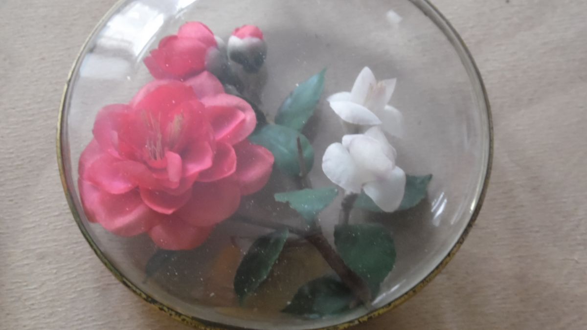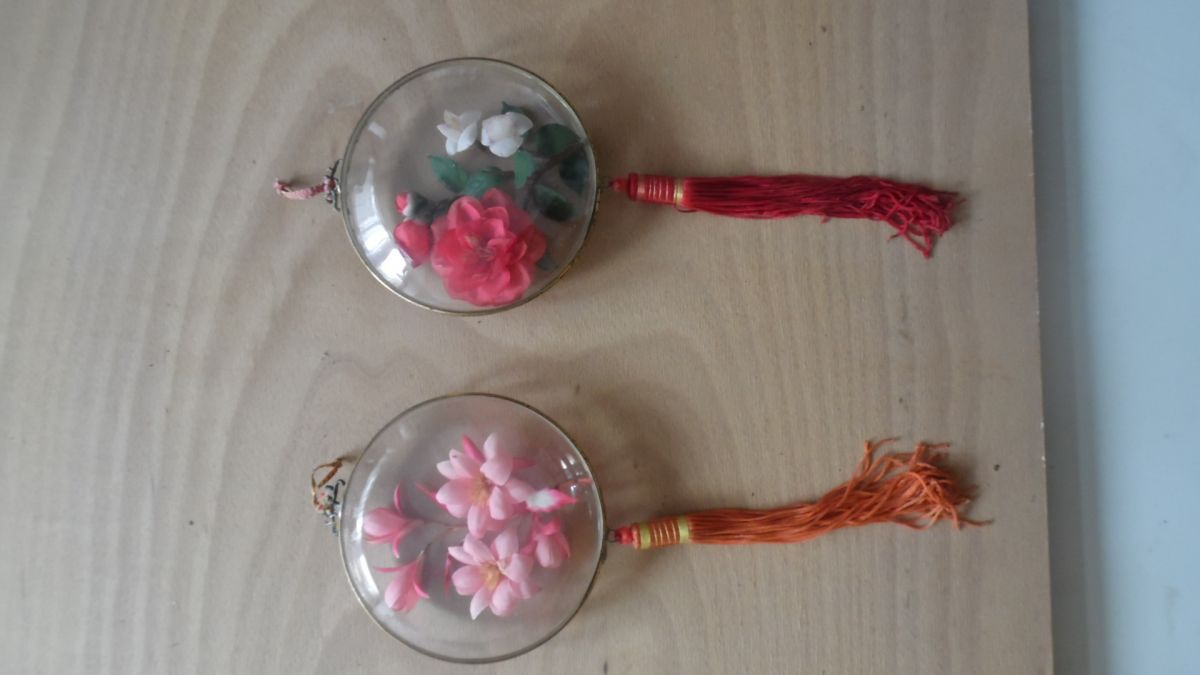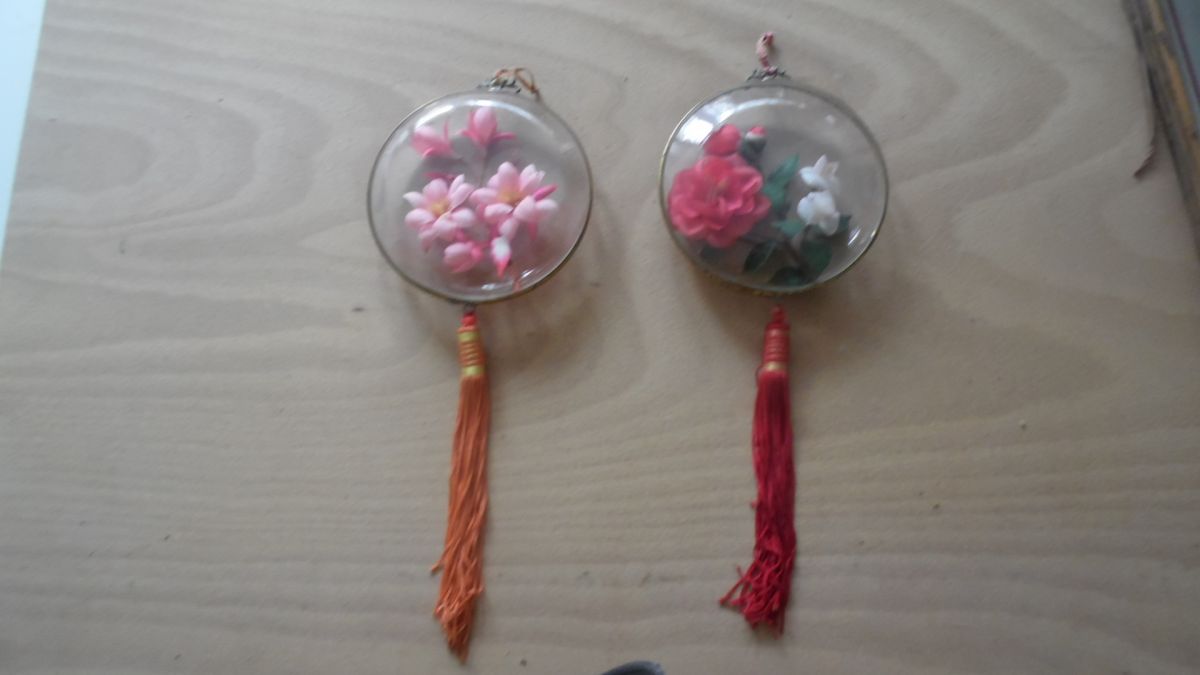 2 medaillons de fleurs artificiels sous coque (pas du verre)