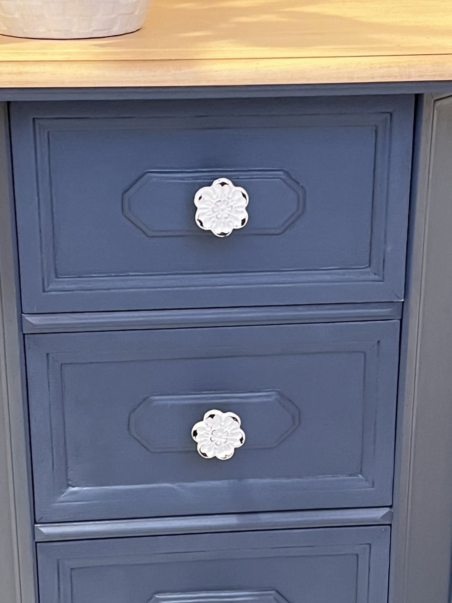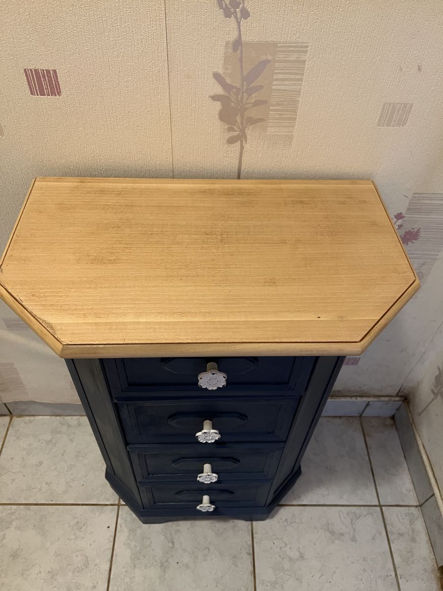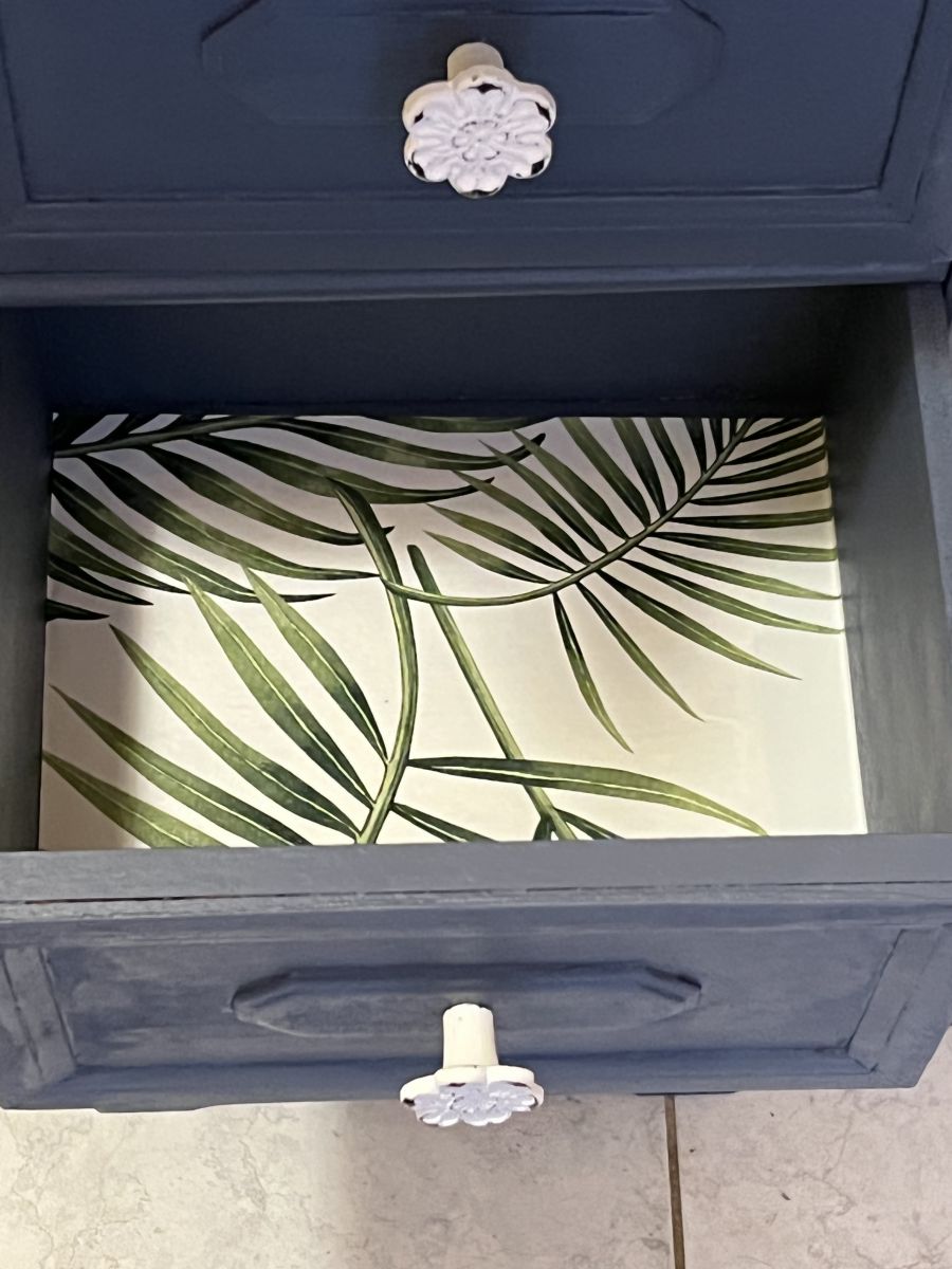 L intérieur des tiroirs est habillé de tapisserie adhésive.