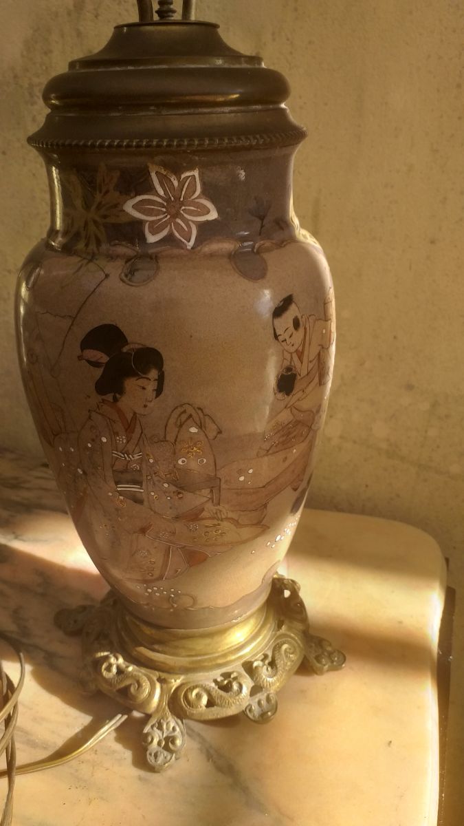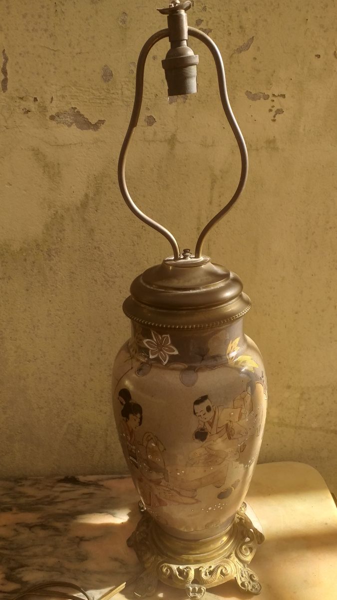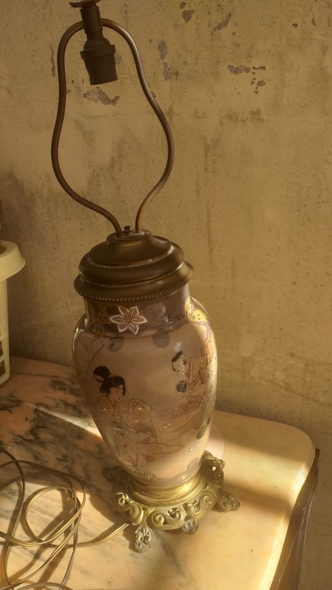 LAMPE Chinoise 55 cm PORCELAINE FINE avec un cable de 2.50m manque la prise à rajouter au bout du fils fonctionne bien légère fêlure mais impeccable très belle lampe