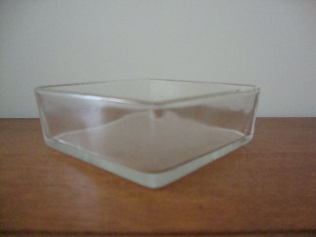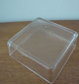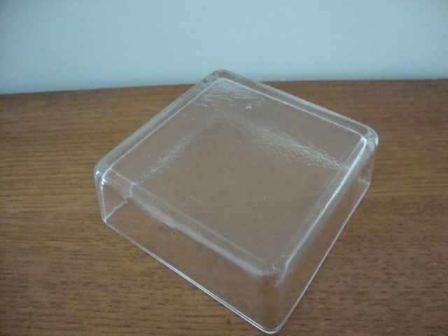 Vide poche, cendrier pavé de verre des années 60 avec fond granité ( à noter une petite bulle d'air ).