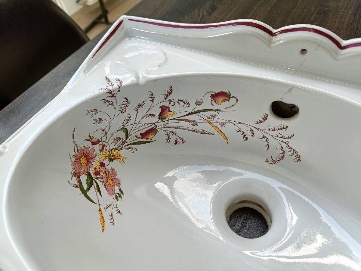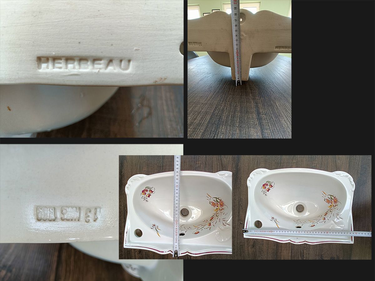 Je vous propose ce très joli lave mains de marque HERBEAU ( Fabrique située à Lille - 59) en faïence et peint à la main.