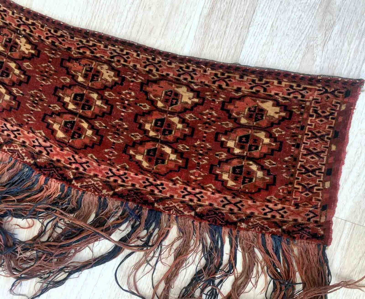 Handmade antique Turkmen Tekke rug in original good condition. The rug has been made in the end of 19th century in Turkmenistan. All dyes on the rug are natural. This rug is collectible piece.