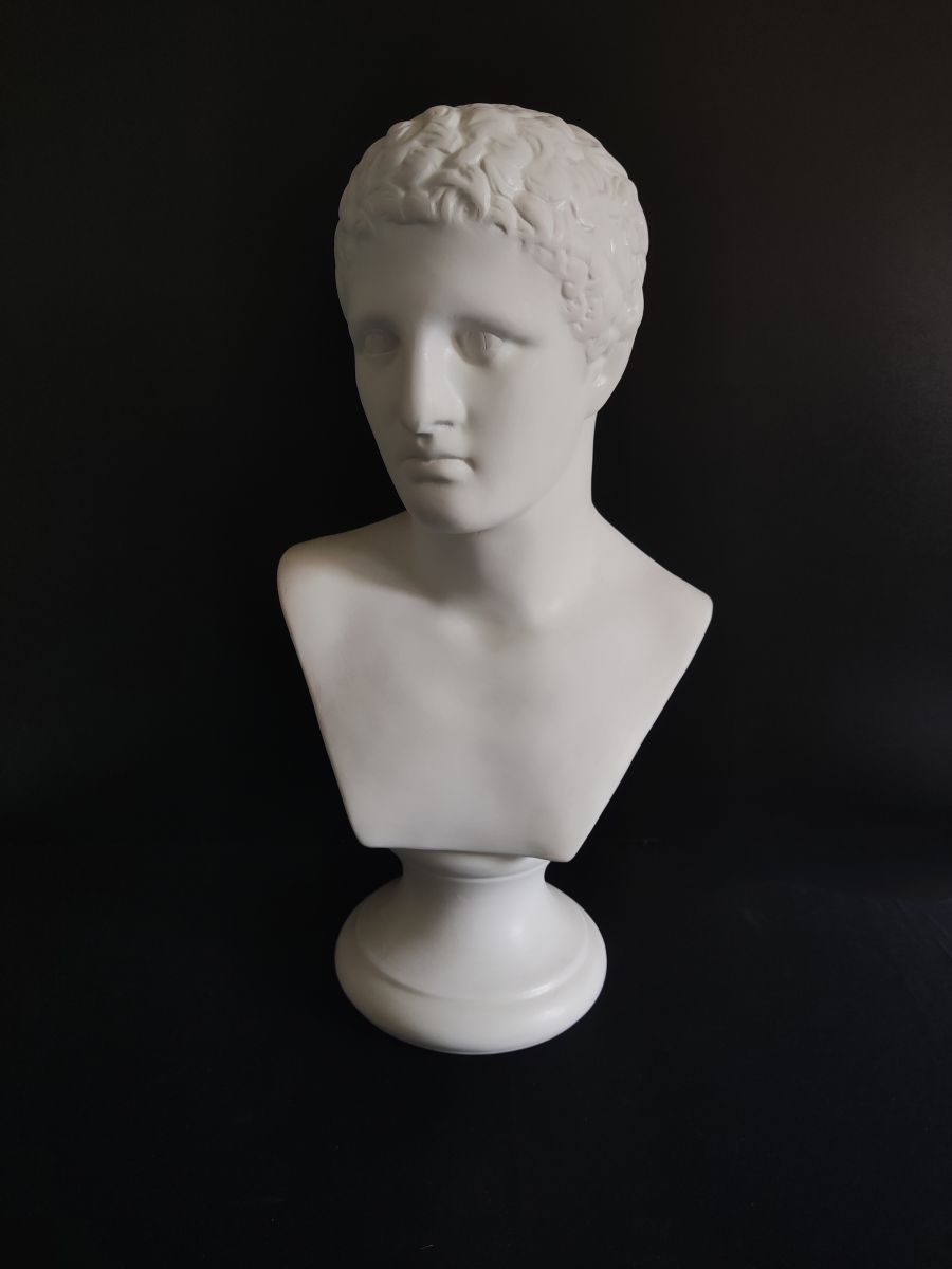 buste de Hermès, dieu de la mythologie grecque en plâtre blanc