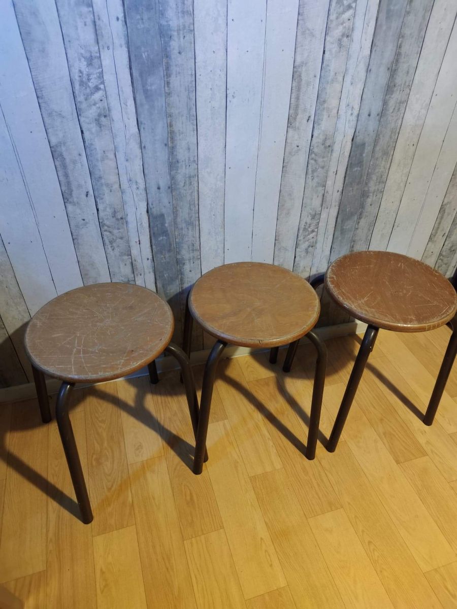 tabourets d'école empilables bois et métal (2 lots de 3)