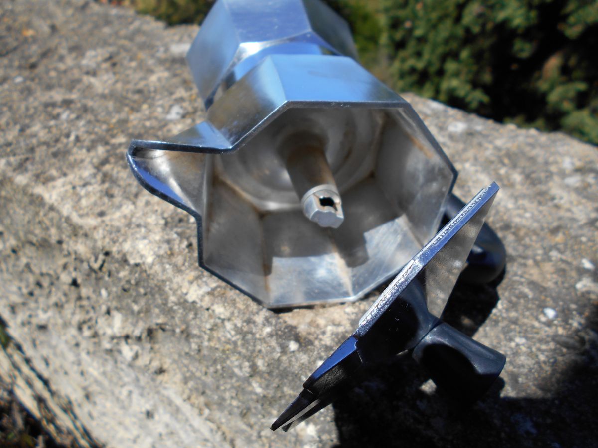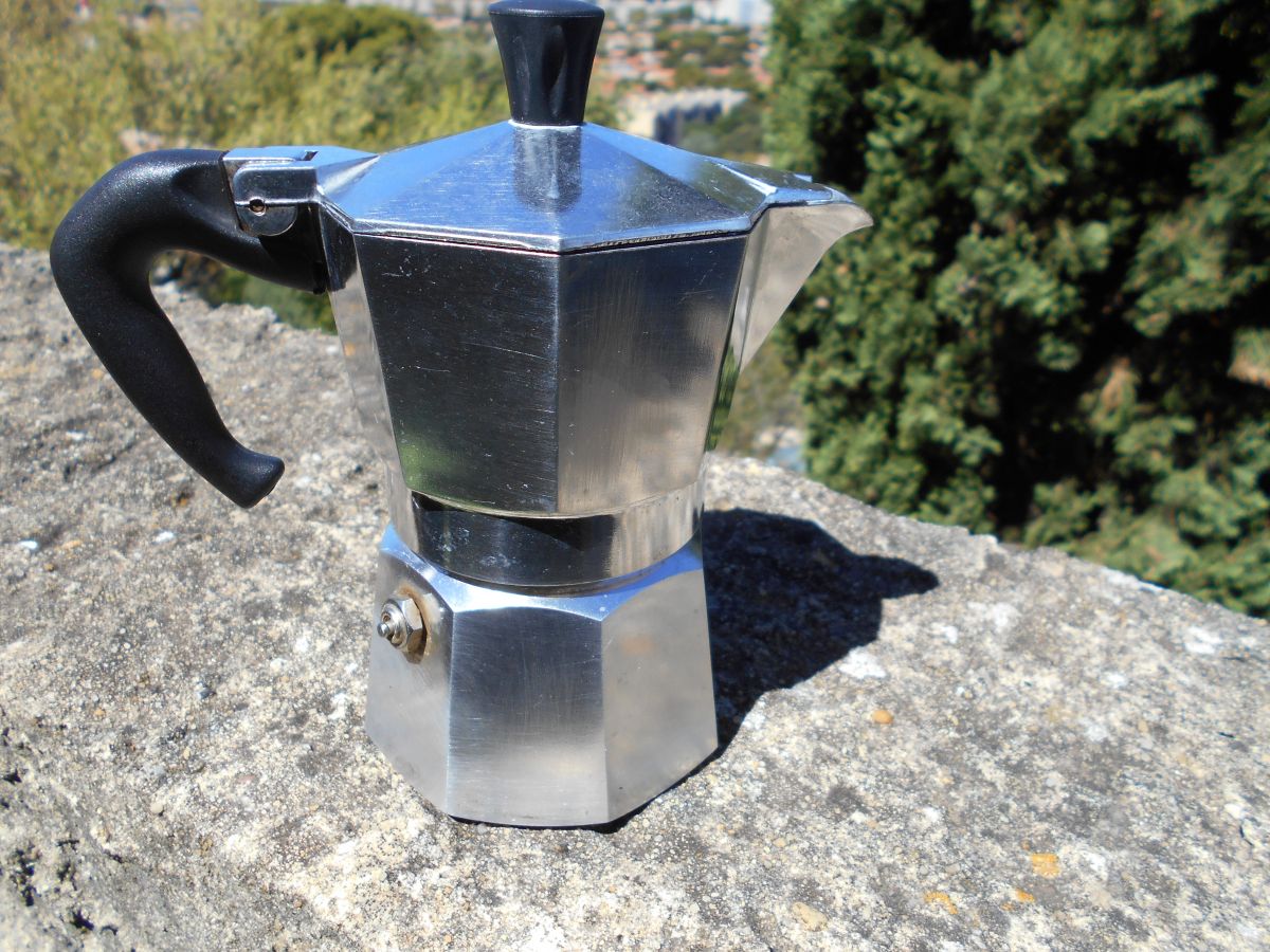 Comment préparer le café: remplissez la chaudière jusqu'à la soupape de sécurité, remplissez le filtre de café moulu sans presser, fermez le pot à moka et placez-le sur la cuisinière, dès que le Moka Express commence à bouillonner, éteignez le feu et le café sera prêt