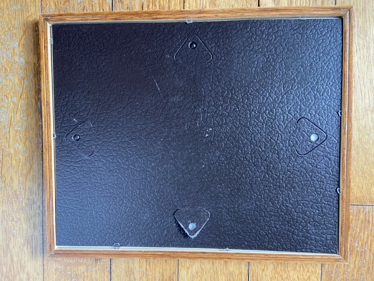 Cadre en bois, bordure intérieure dorée.
