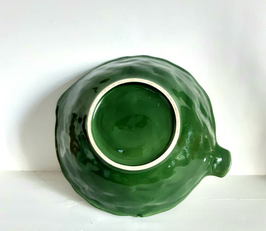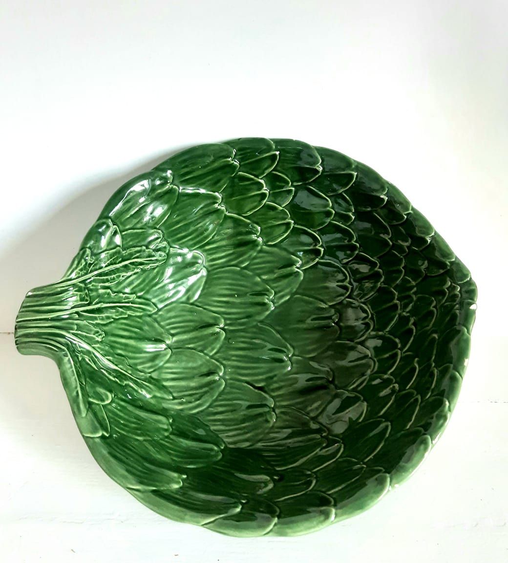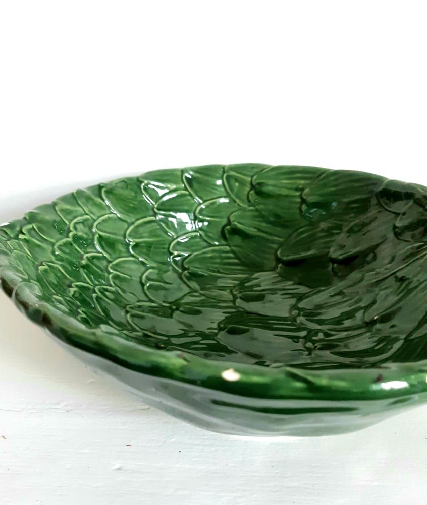 Coupe ou saladier en céramique barbotine en forme d'artichaut. Travail vintage, vers 1960.