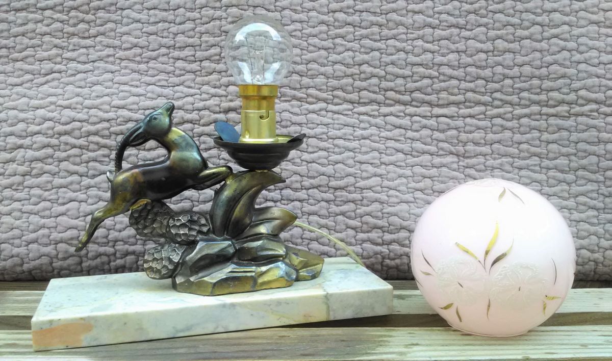 Antilope et décor végétal typique des années 30 et du style art déco