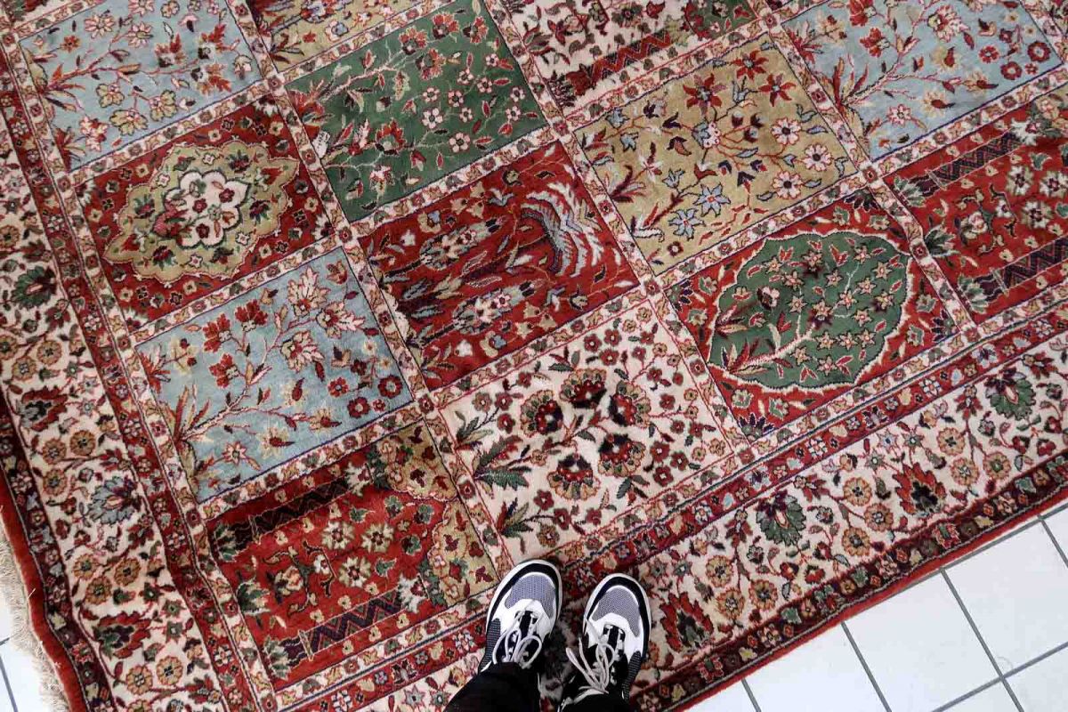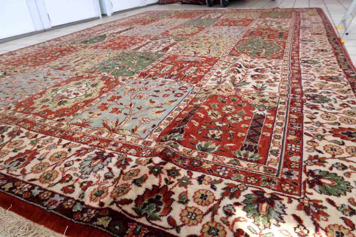 Vintage Indian rug with Qum garden design. This rug is from the end of 20th century in original good condition.
