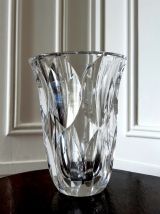 Vase en cristal taillé à décor de palmettes dans le style art déco.