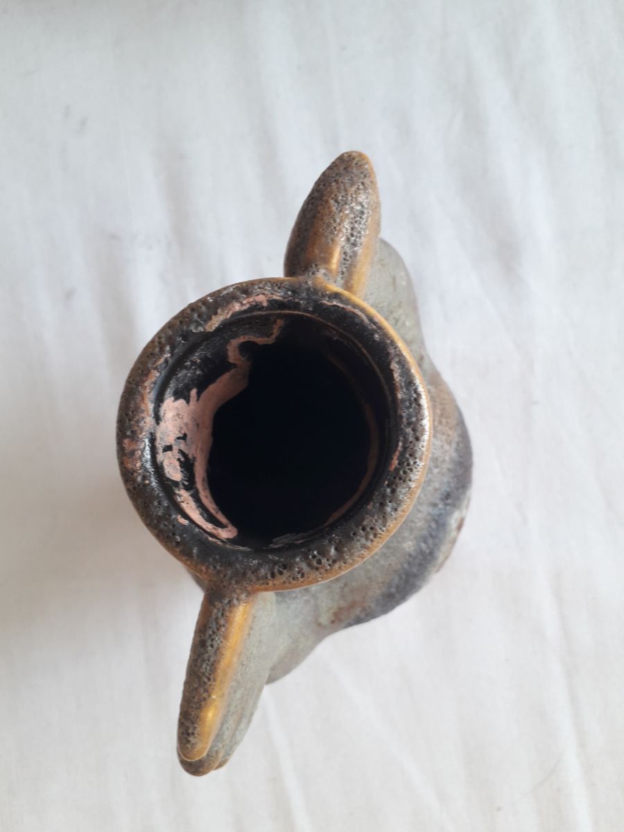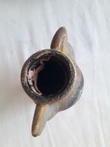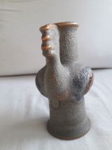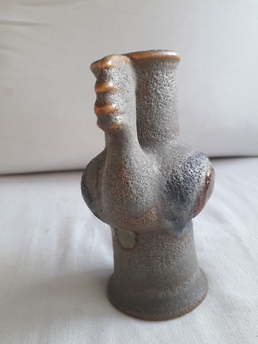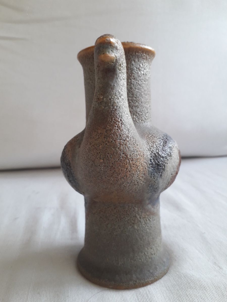 Vase vintage zoomorphe en forme d'oiseau. La céramique est très originale avec une insertion en verre sur chaque face représentant un oeil. En excellent état.