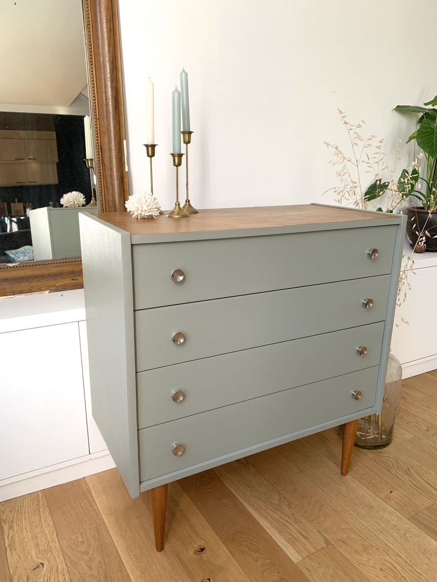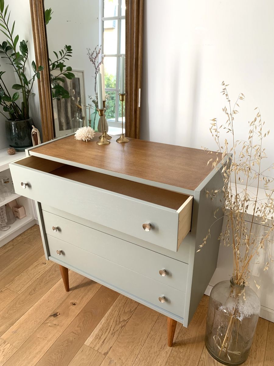 Elégance et sobriété pour cette commode des années 50/60 avec de jolis pieds fuseaux .